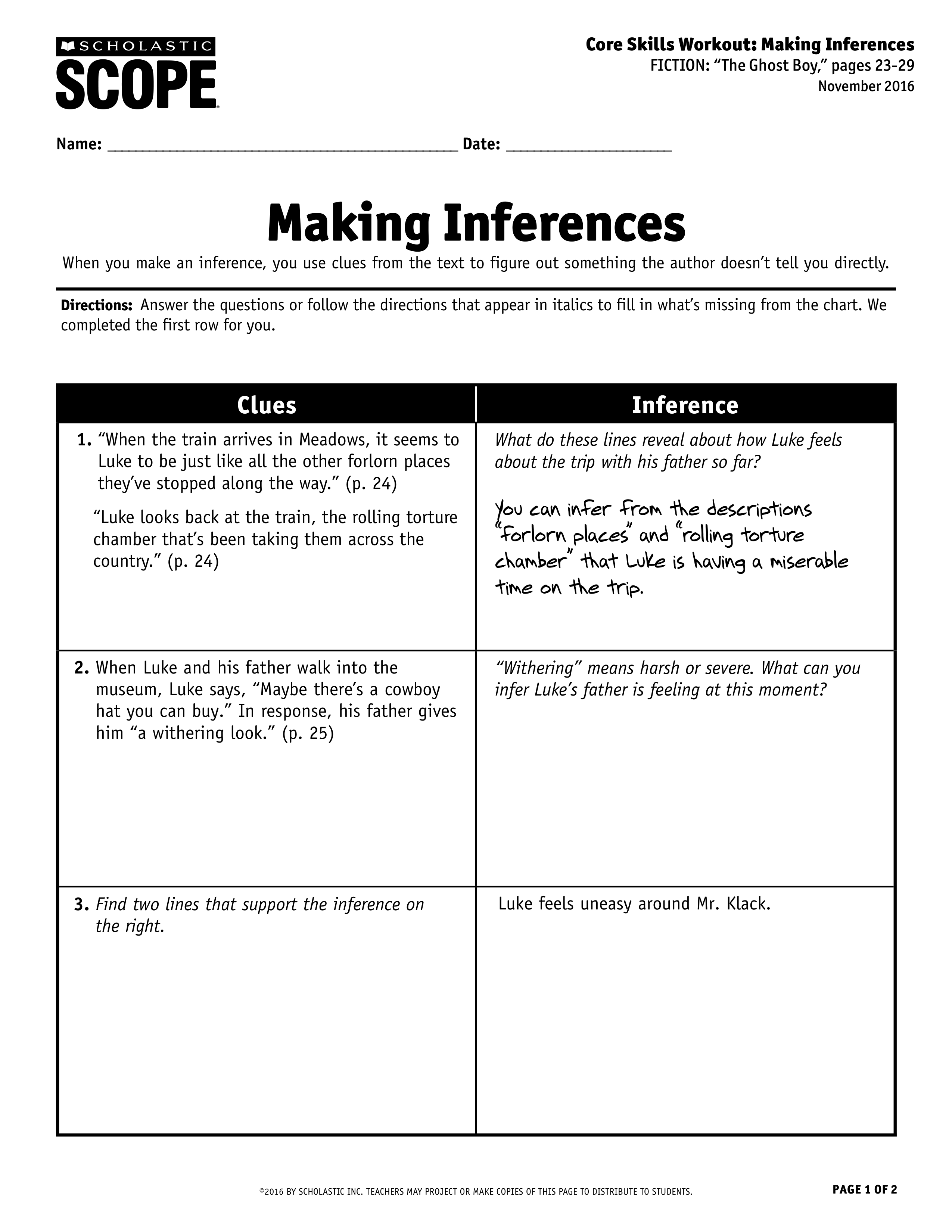 Graphic organizer to accompany "Ghost Boy" SCHOLASTIC SCOPE