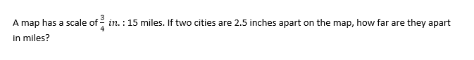 A scooter is 3.5 feet long. Find the length of a scale model of the scooter if the scale is 1 in = .75 feet.
