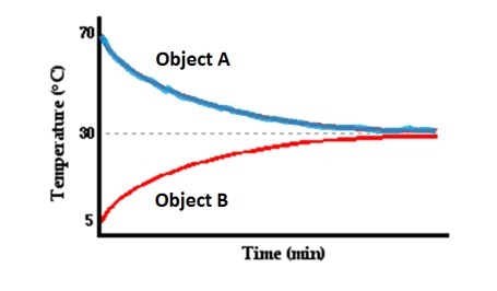Explain how this graph shows that the two objects reached thermal equilibrium