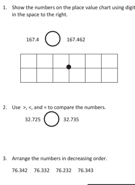 example of unit form: 23.456 is 2 tens 3 ones 4 tenths 5 hundredths 6 thousandths