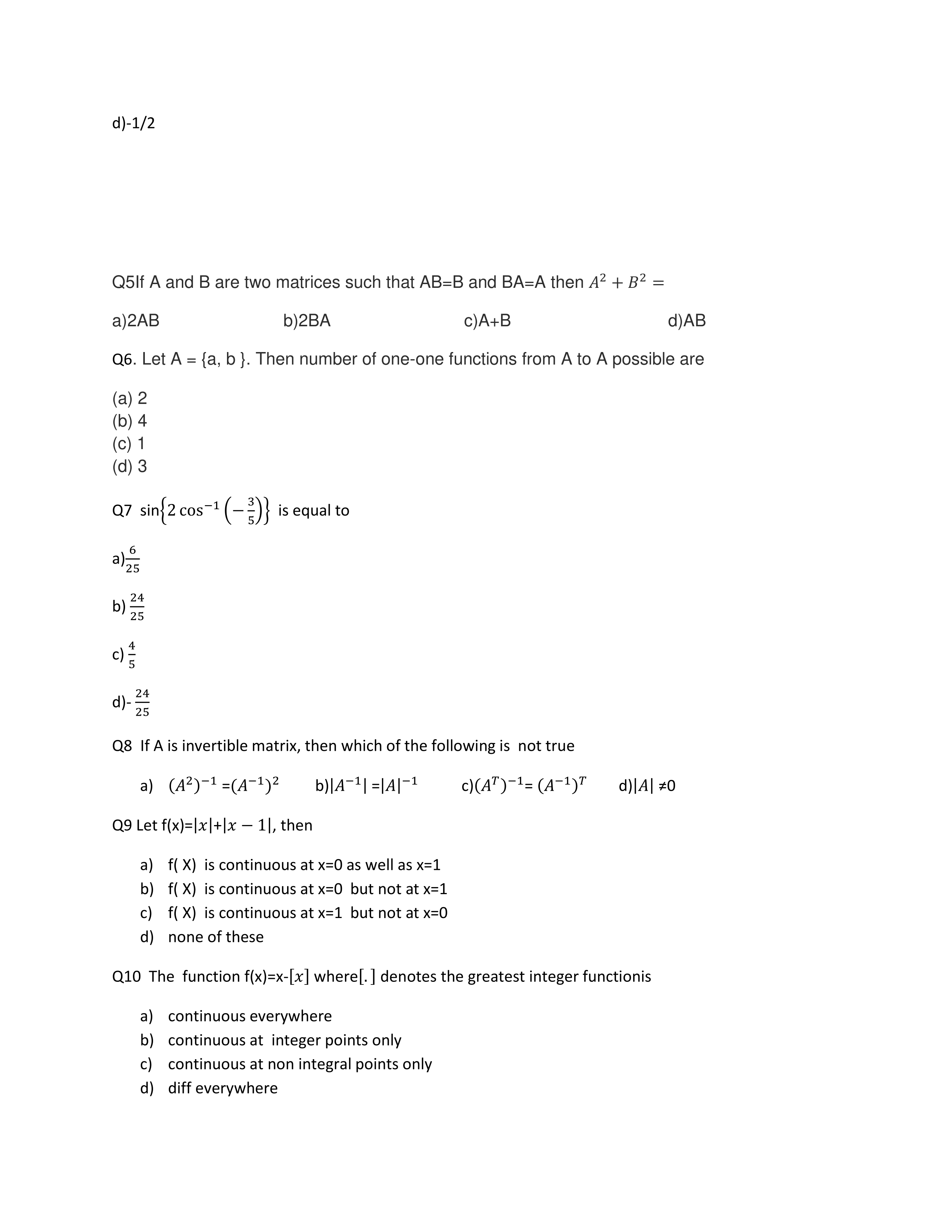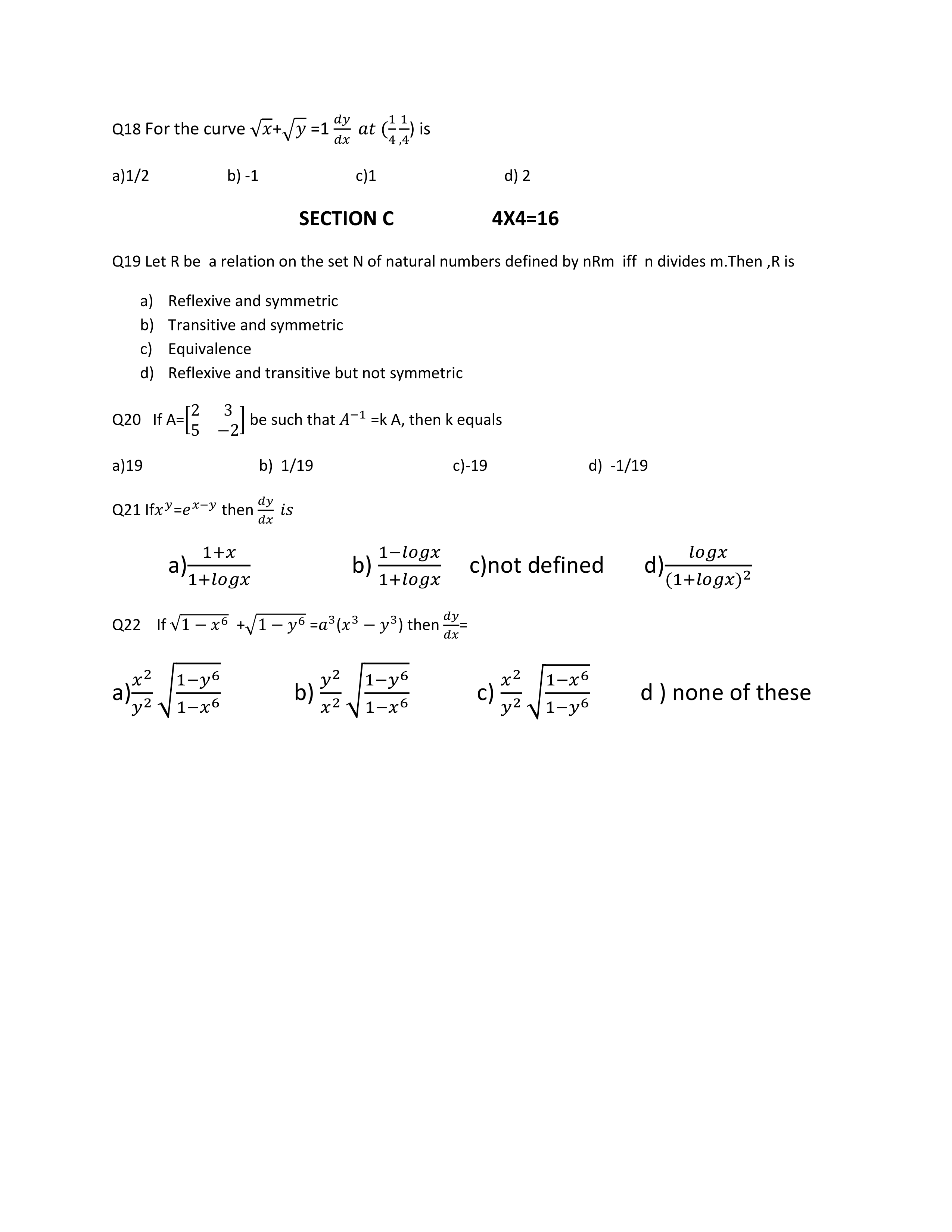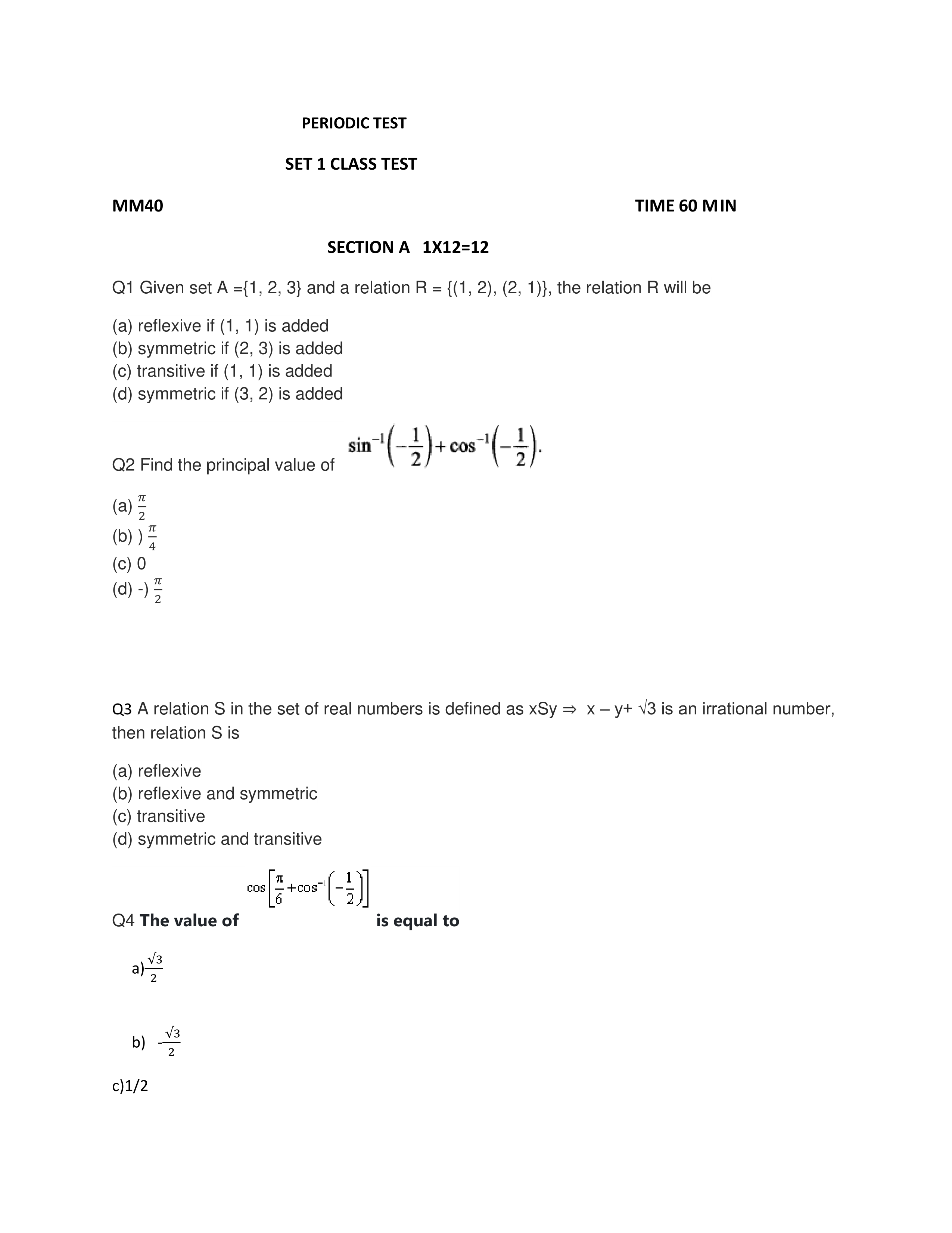 PT I Set I maths XII