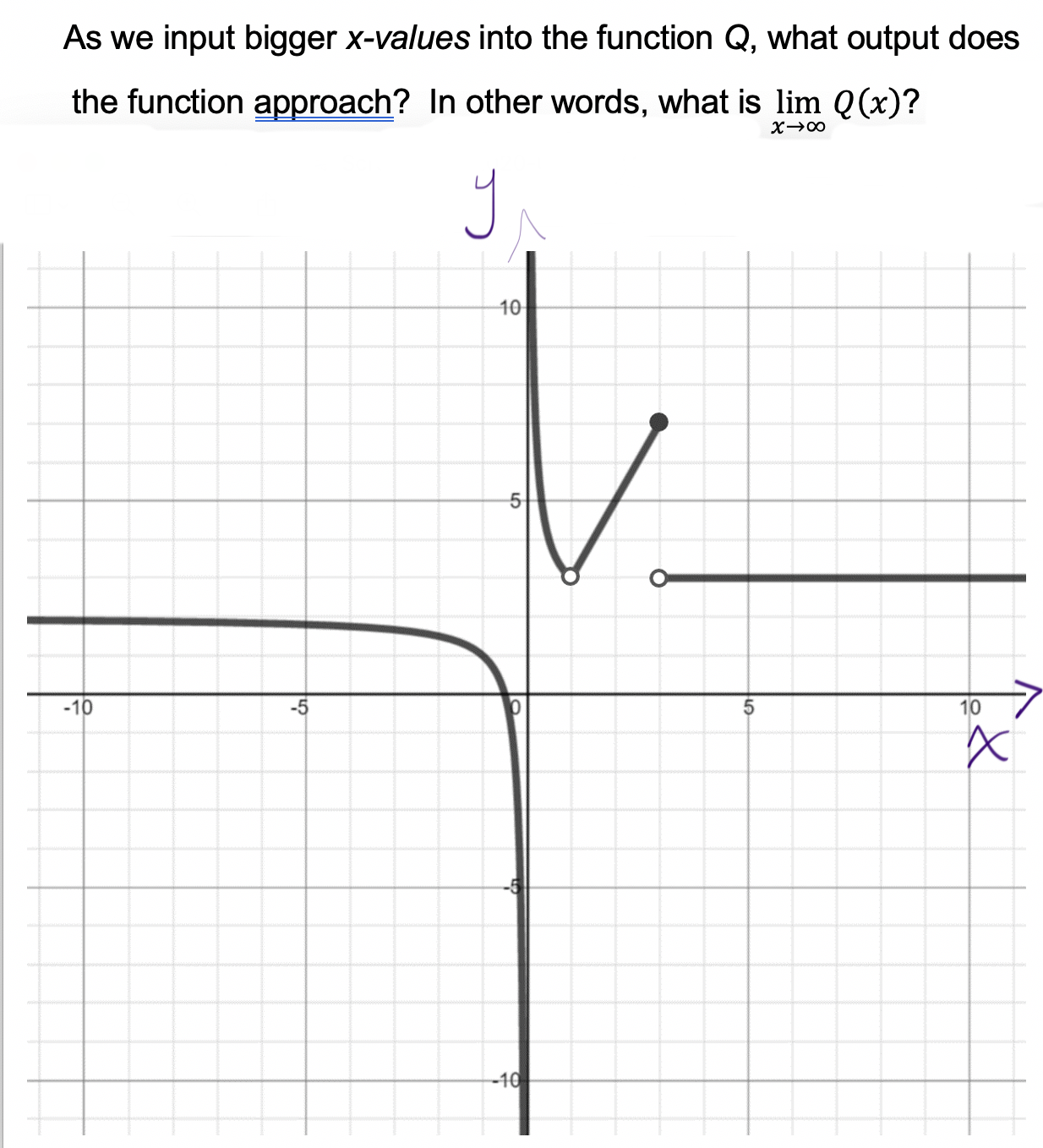 Below is the function Q. Write the equation for each asymptote of the function Q.