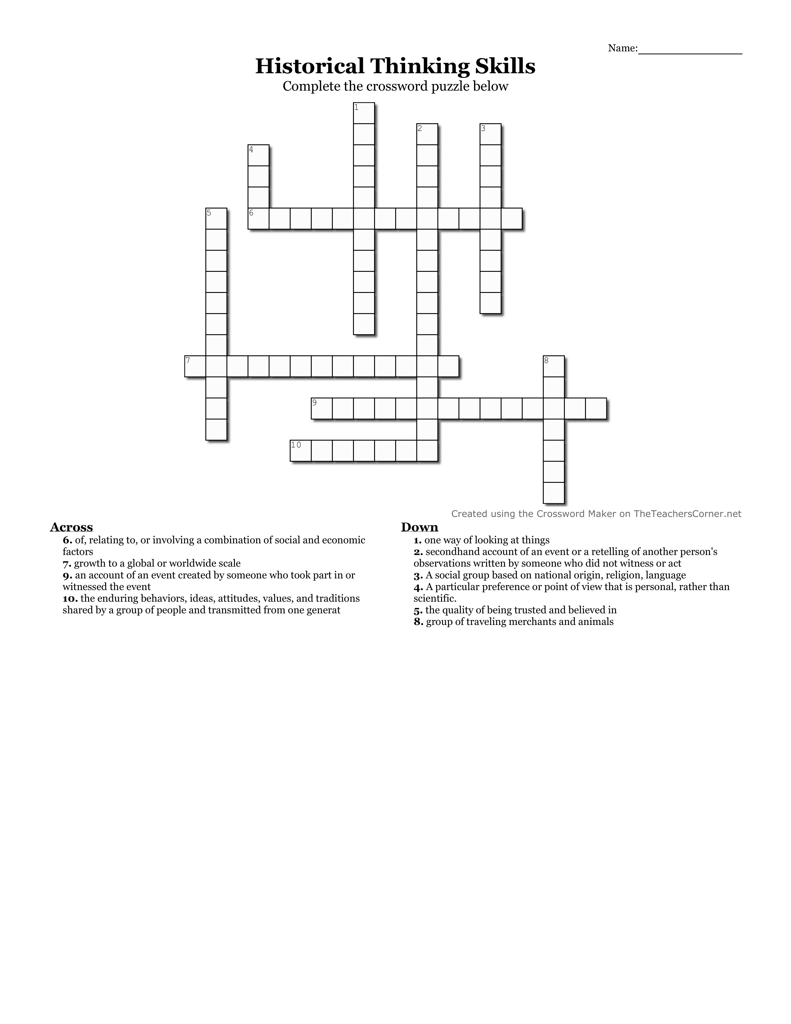 10 Across: The enduring behaviors, ideas, attitudes, values, and traditions shared by a group of people and transmitted from one generation to another