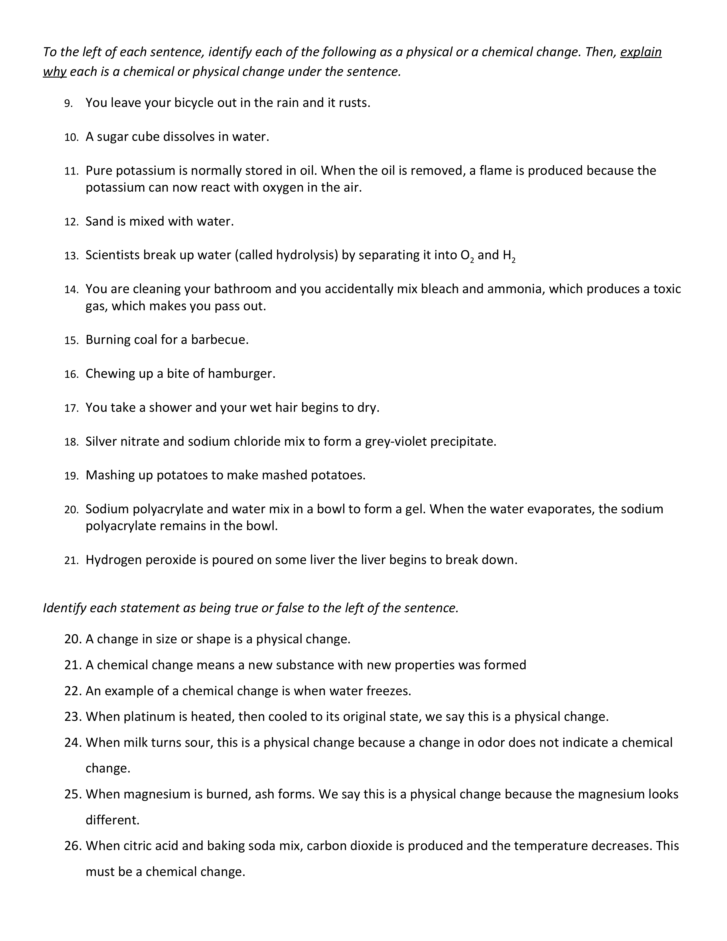 AGHS - Chem - 1.3 Physical and Chemical Changes
