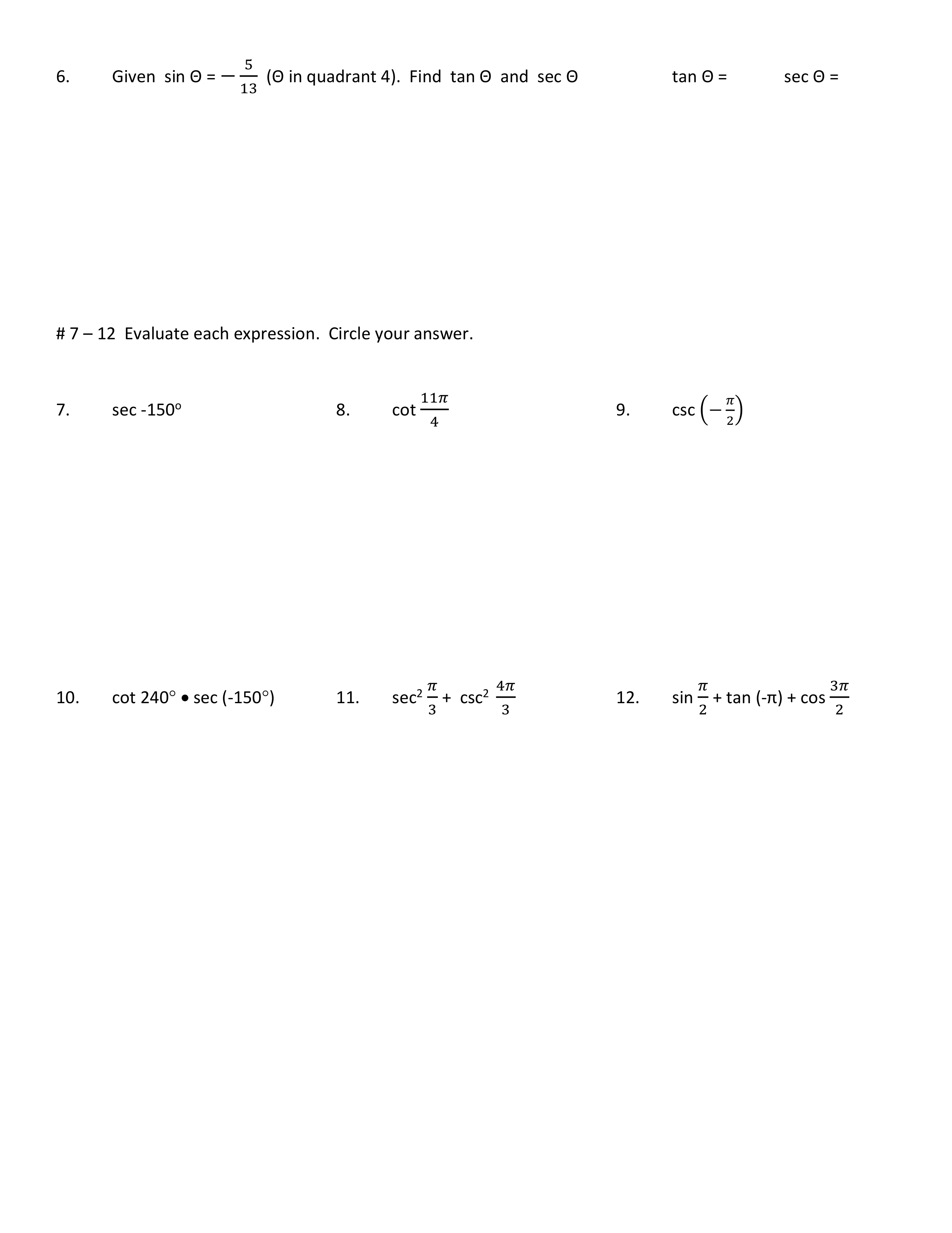 Given the point (-4,3) Find the ratio of sec ONLY