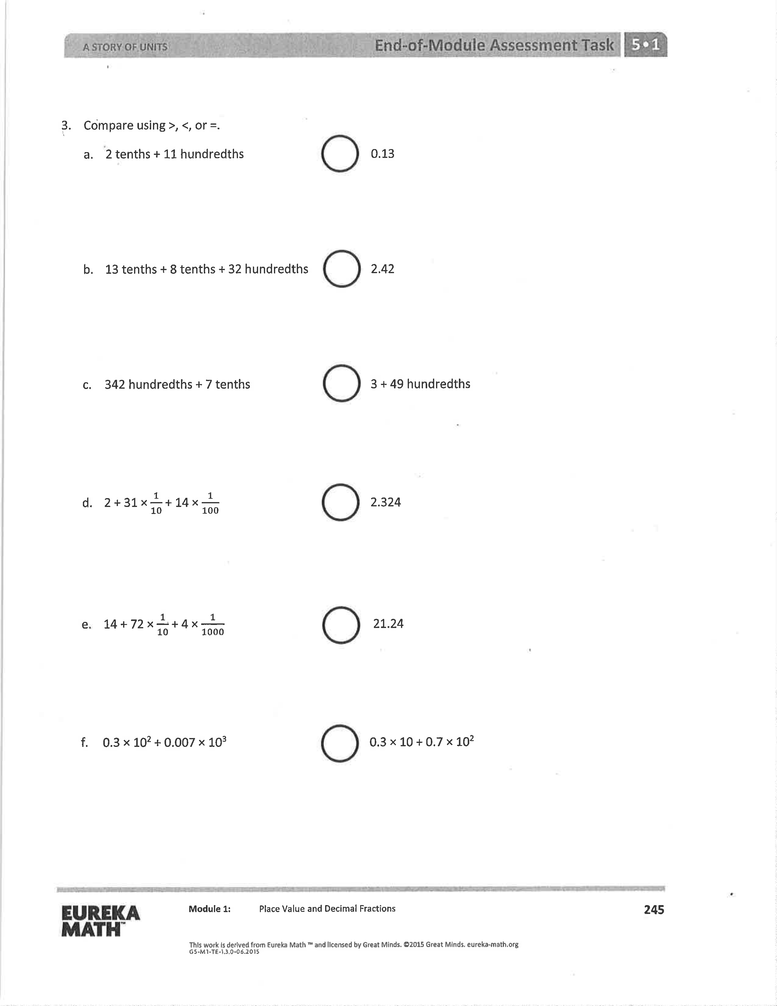 The following equations involve different quantities and use different operation, yet produce the same result. Use a place value chart and words to explain why this is true.