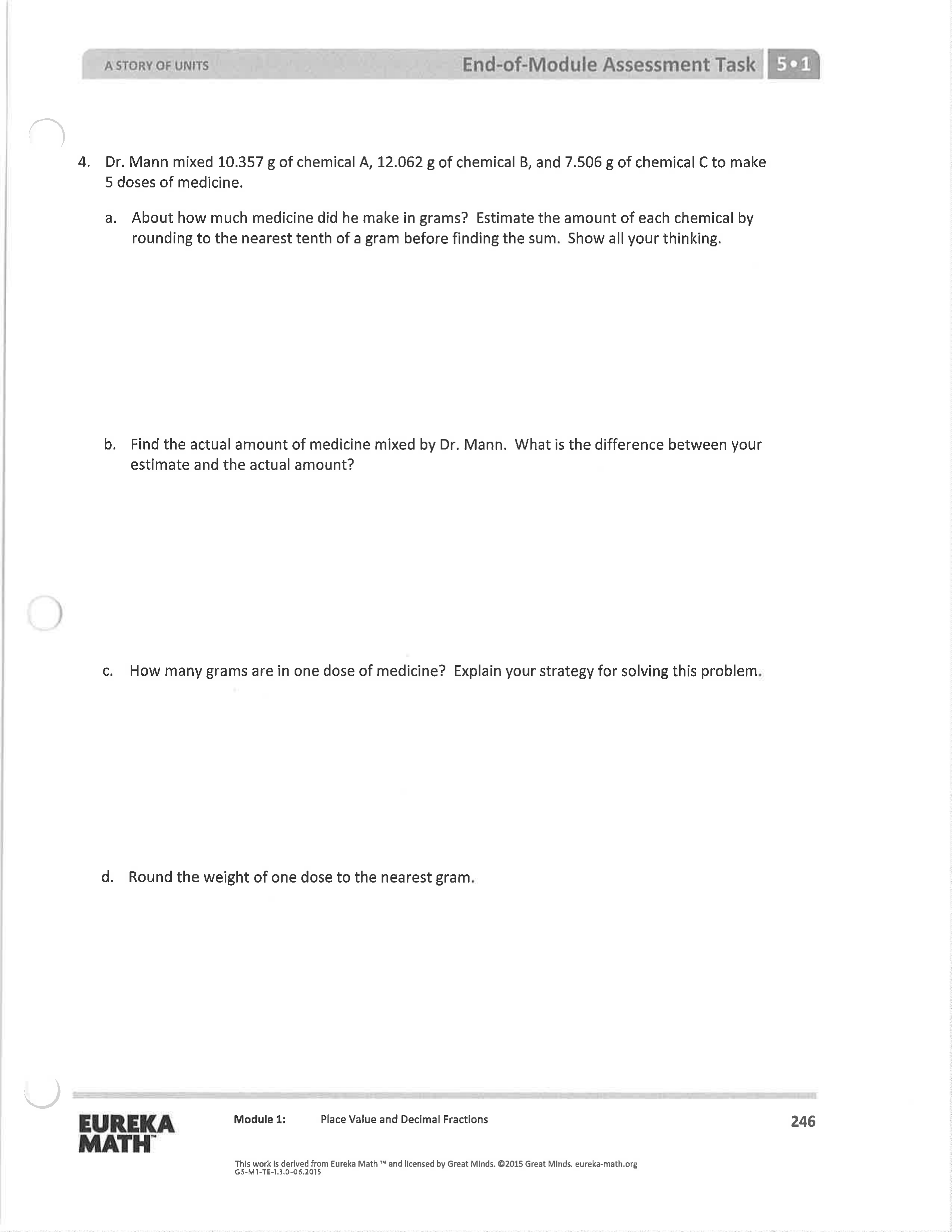 About how much medicine did he make in grams? Estimate the amount of each chemical by rounding to the nearest tenth of a gram before finding the sum.