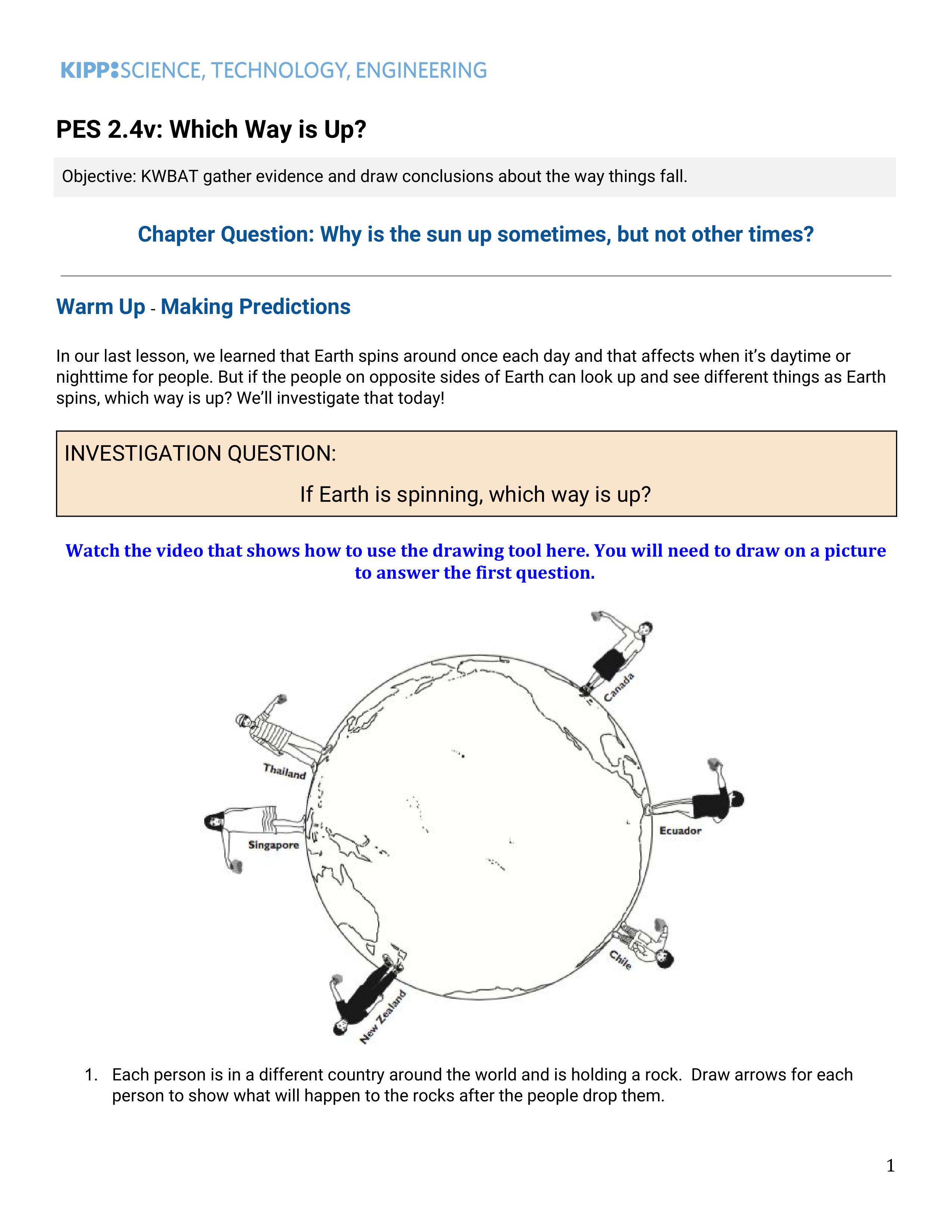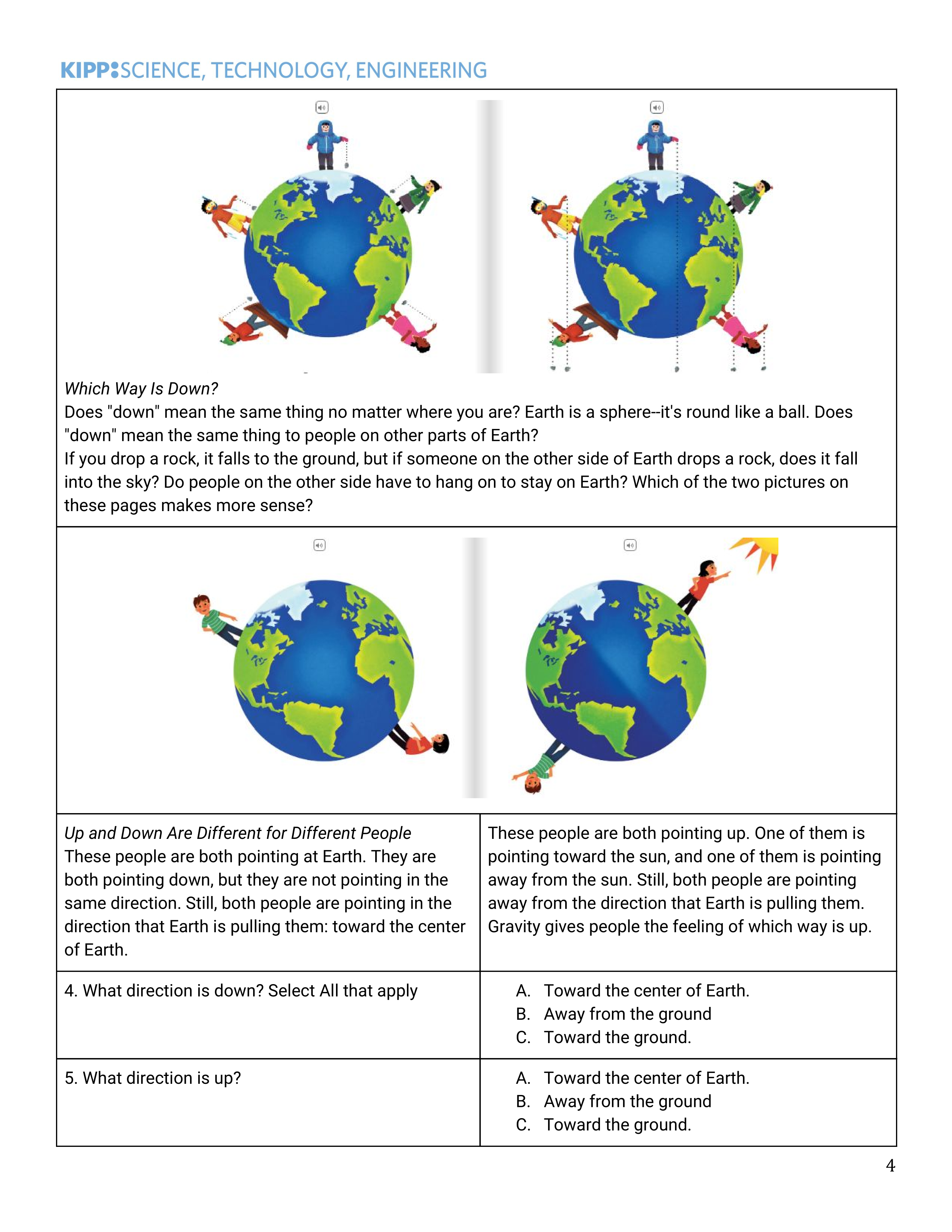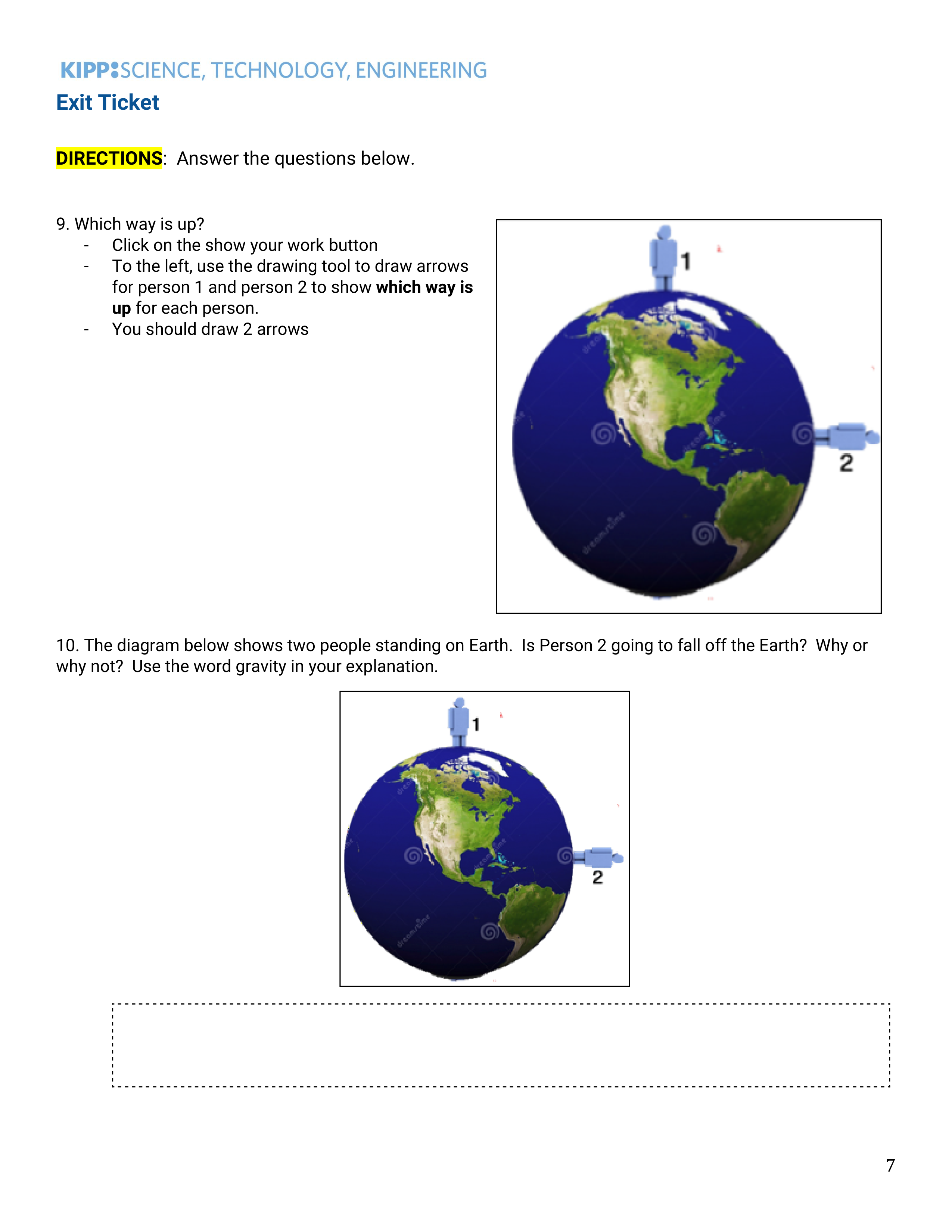The diagram below shows two people standing on Earth. Is Person 2 going to fall off the Earth? Why or why not? Use the word gravity in your explanation.
