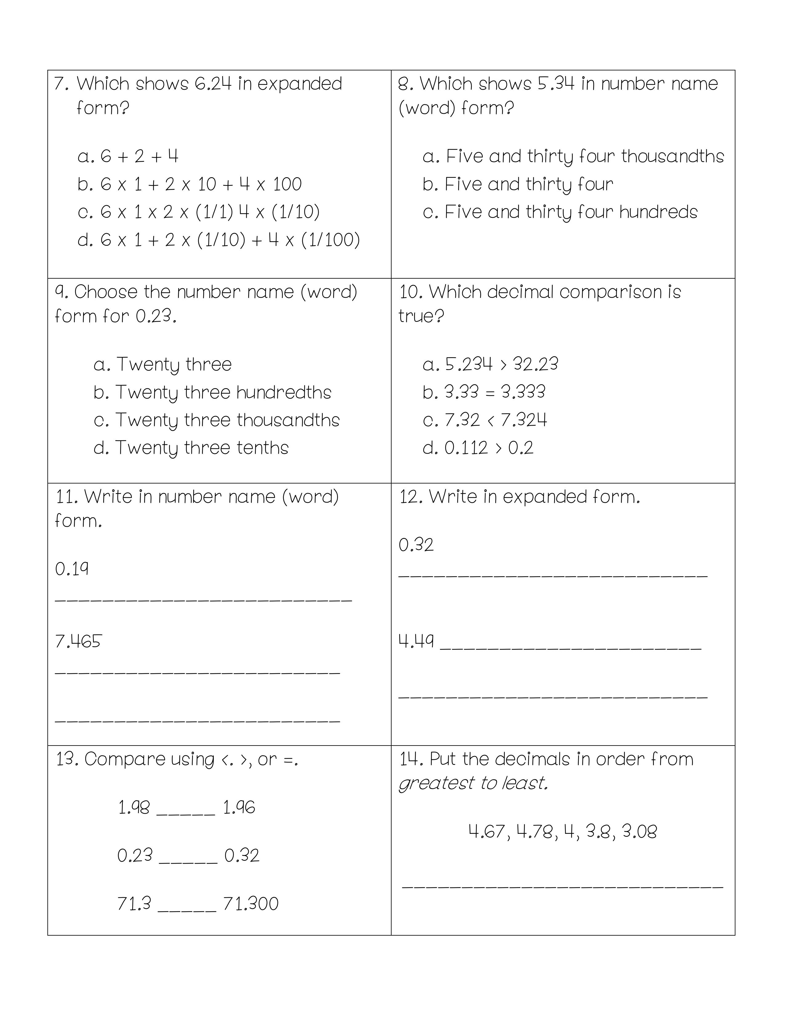 Put the decimals in order from greatest to least. (Use 1 space to seperate the numbers)