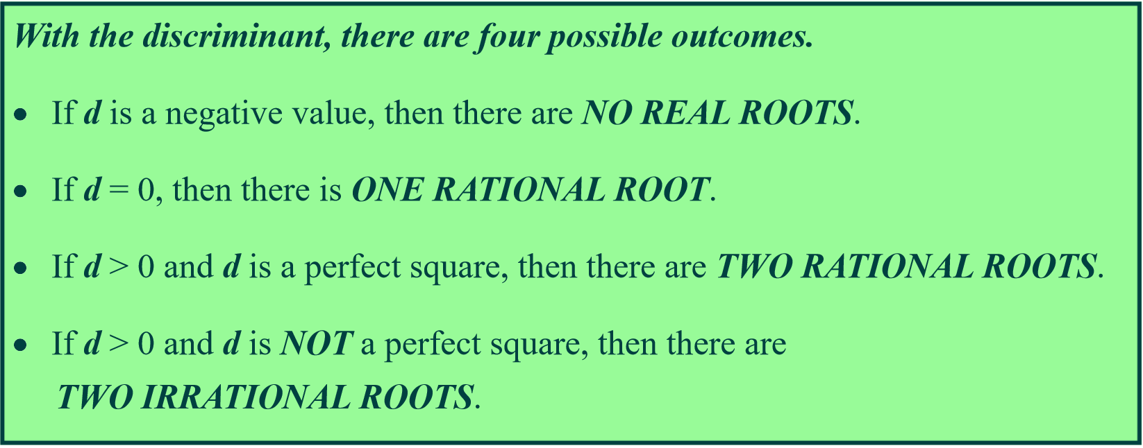 Use the discriminant to determine the number and type of roots.