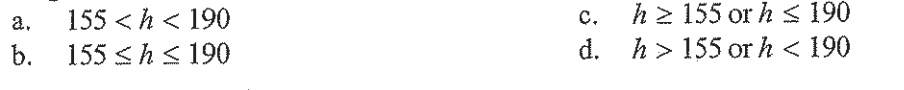 was 155 cm, and the height of the tallest student was 190 cm. Which inequality represents the range of heights?