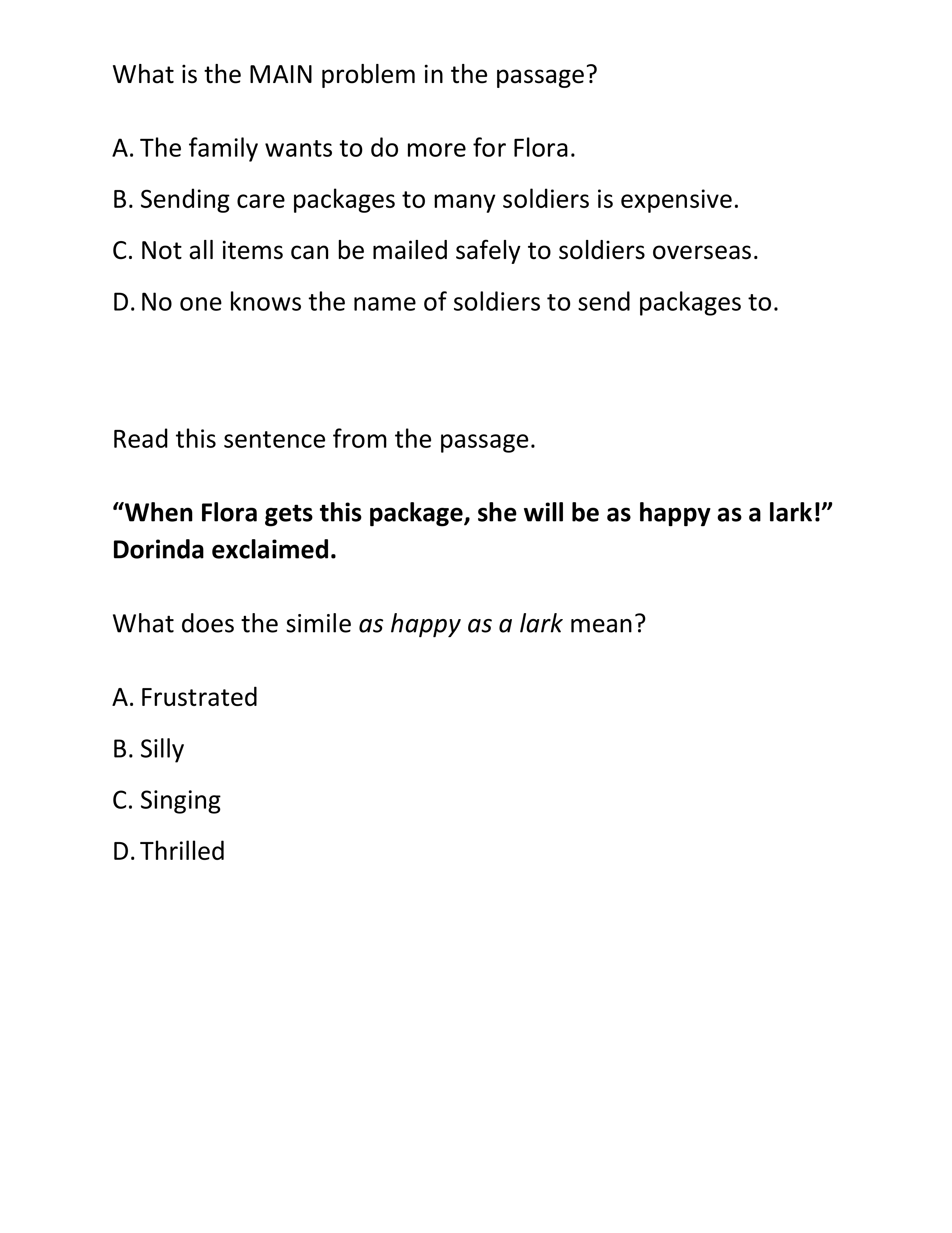 “When Flora gets this package, she will be as happy as a lark!” Dorinda exclaimed.
