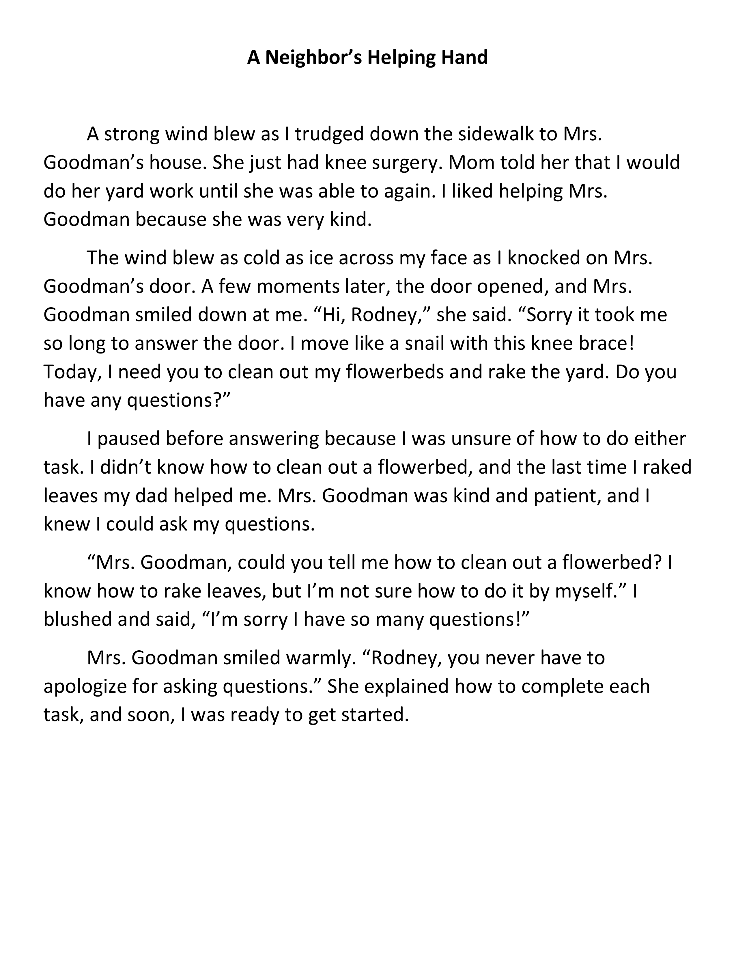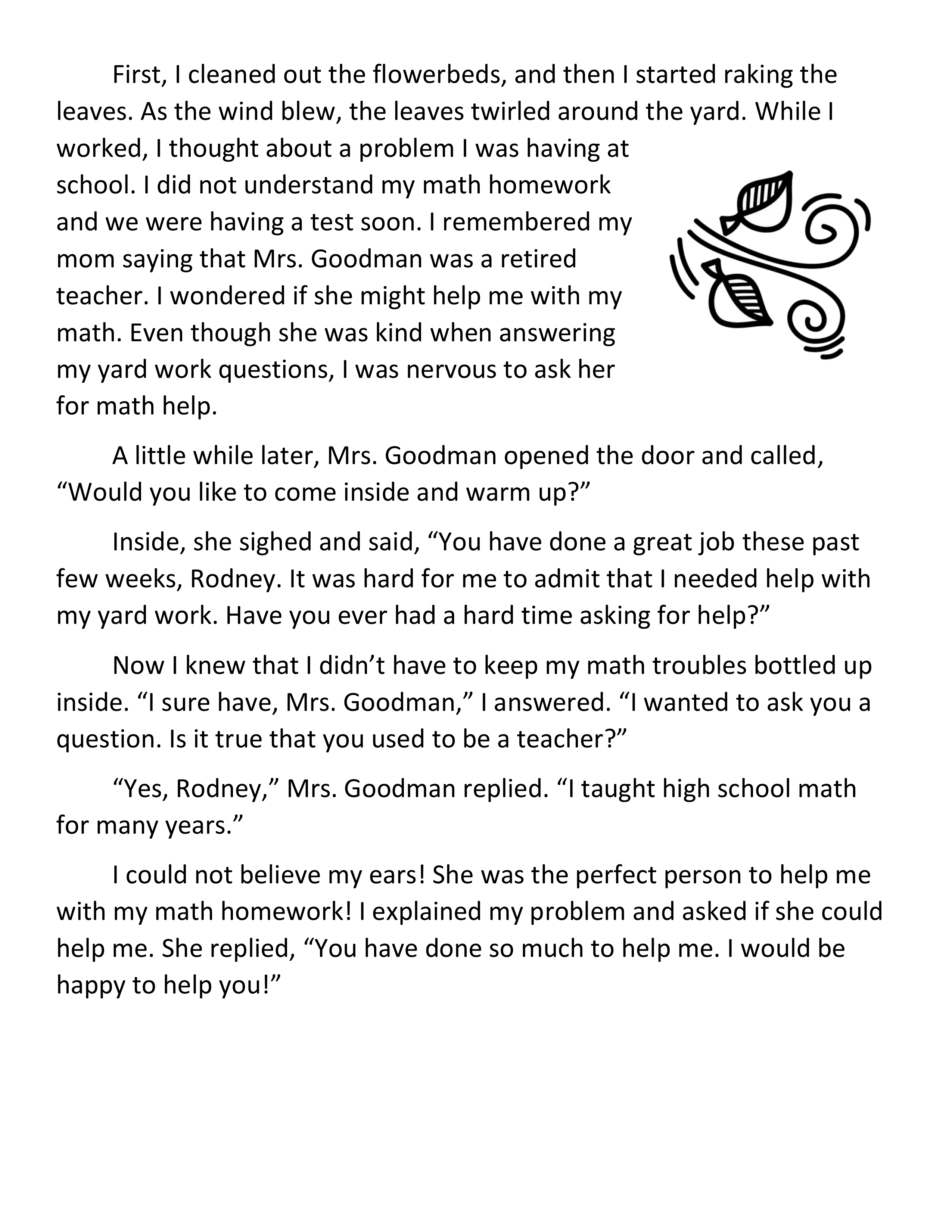 Rodney feels nervous about asking Mrs. Goodman for help until he_________________________.