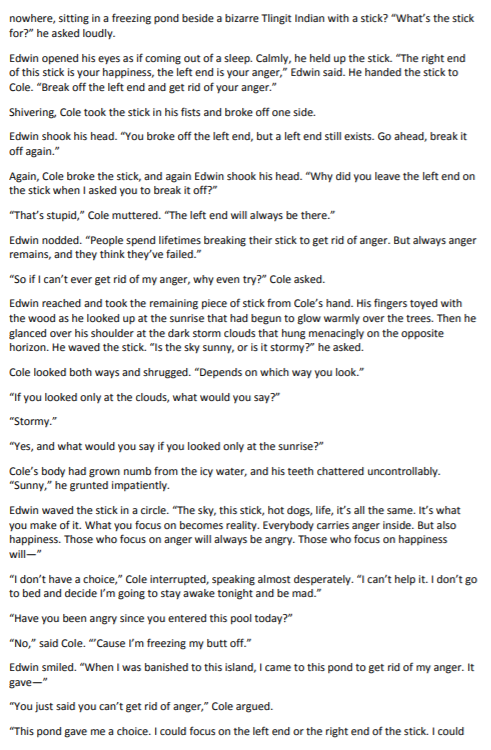 What does Edwin mean by, “The sky, this stick, hot dogs, life, it’s all the same”?