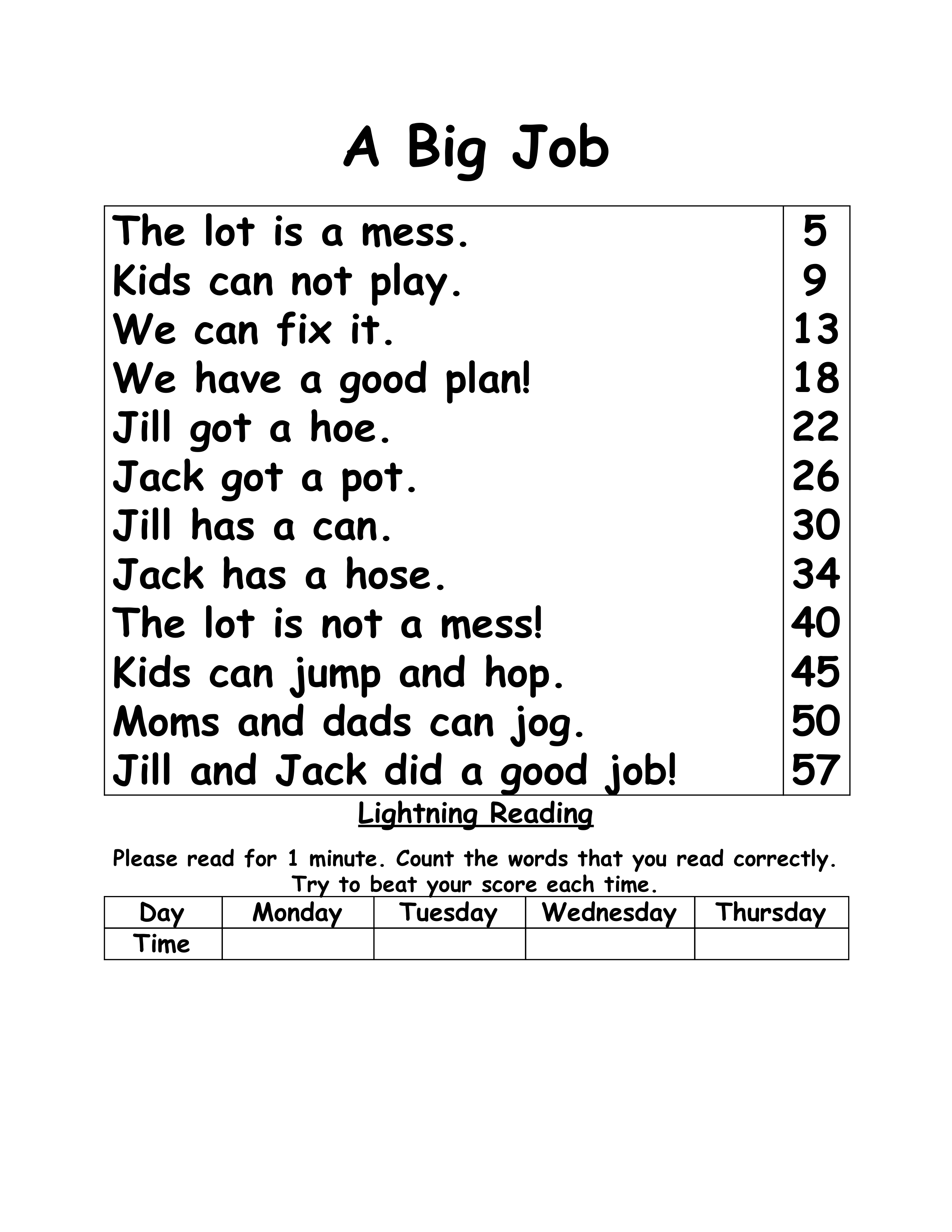 Fluency read 1 minute, BA U1 W3 short o