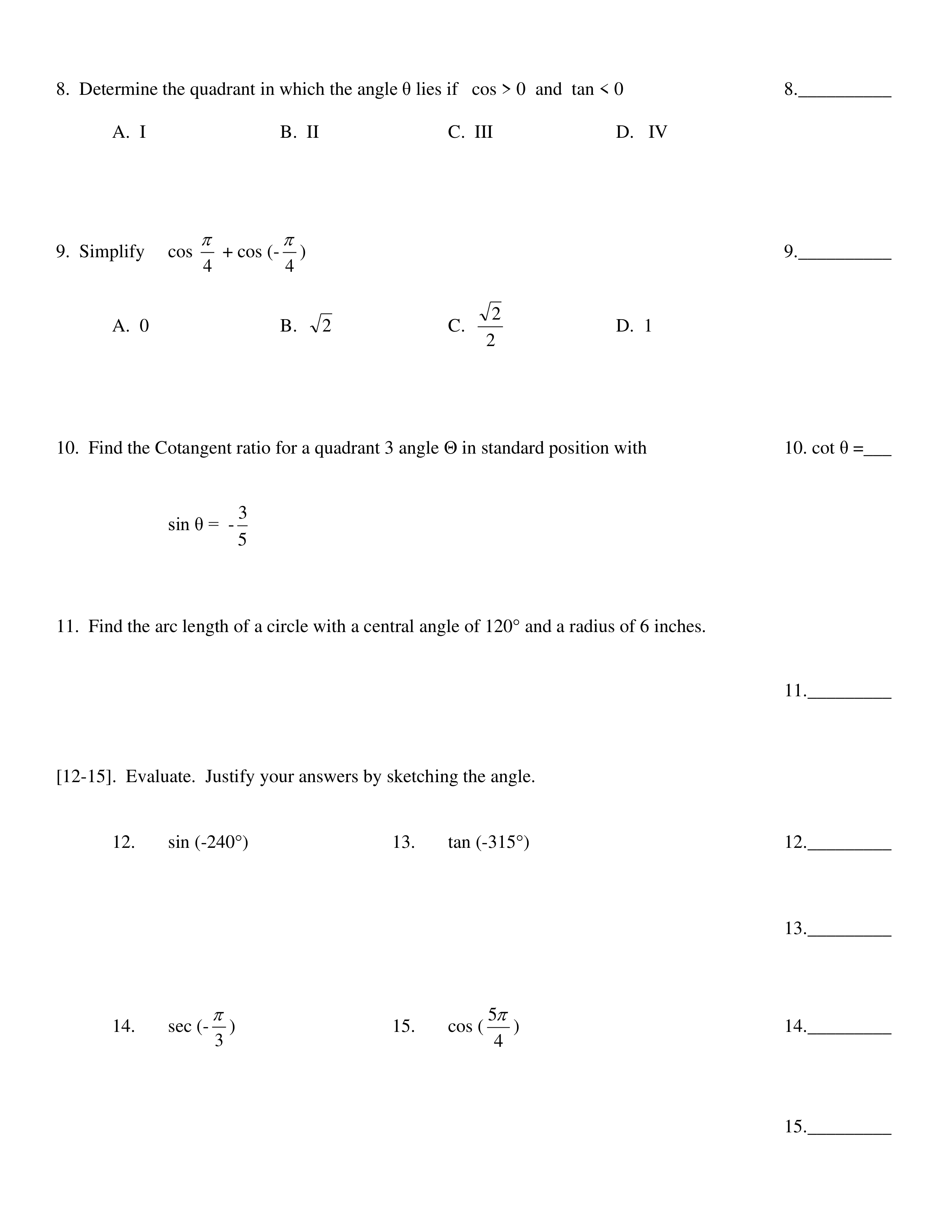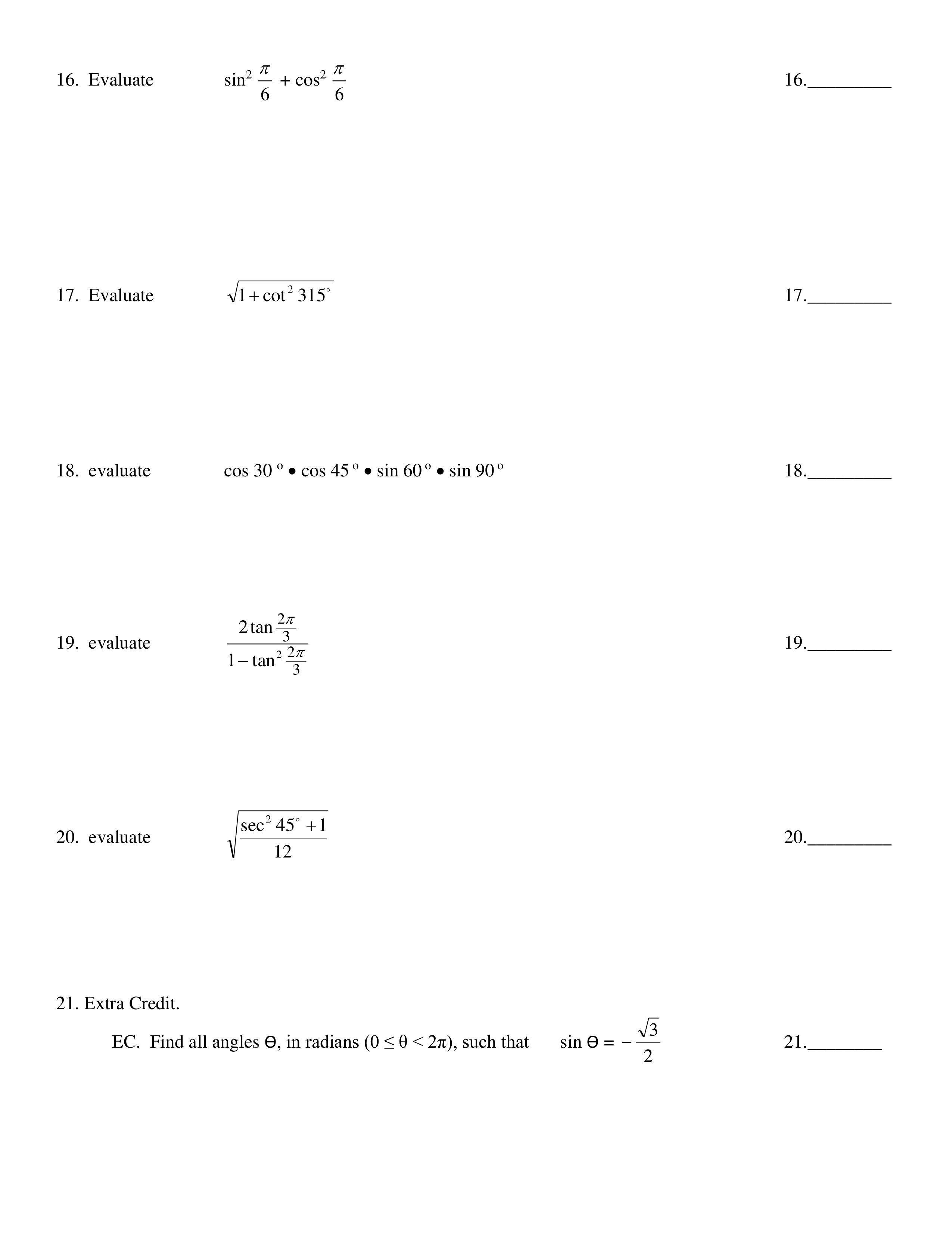 EC. Find all angles Ѳ, in radians (0 ≤ θ < 2π), such that