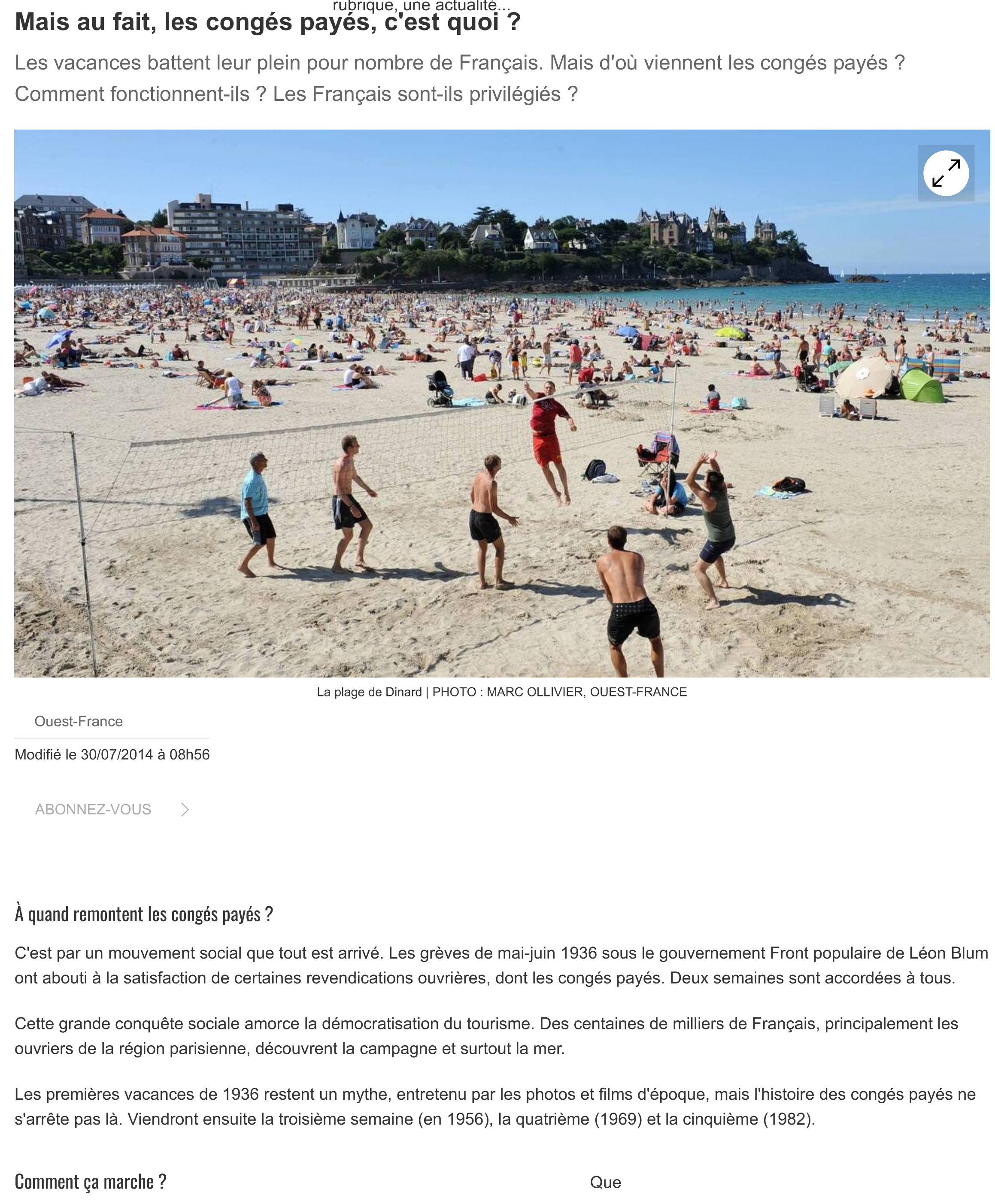 Quand est-ce que le peuple a reçu 5 semaines de vacances