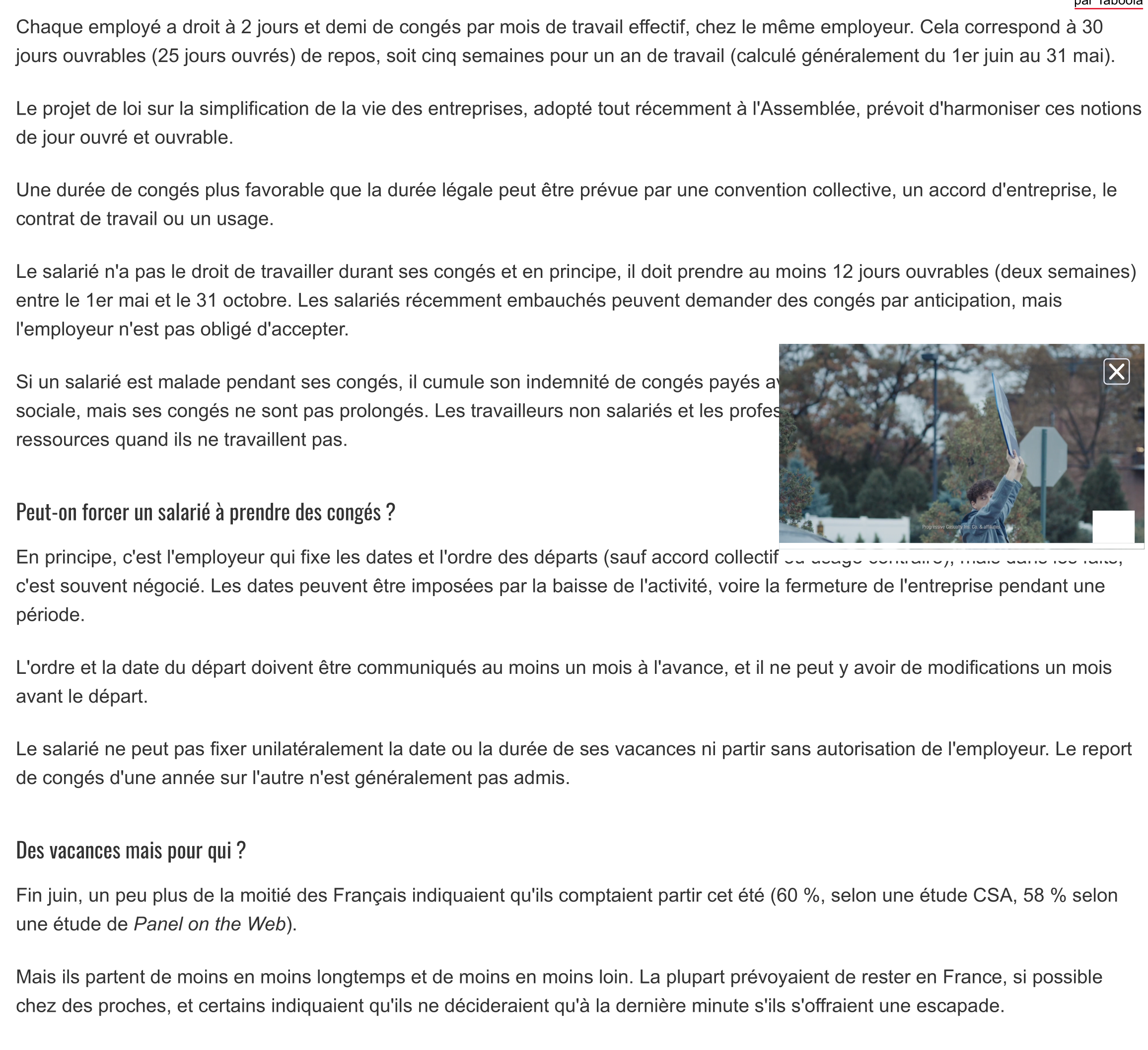 Aujourd'hui, combien de jours de congé est-ce qu'on reçoit en France?