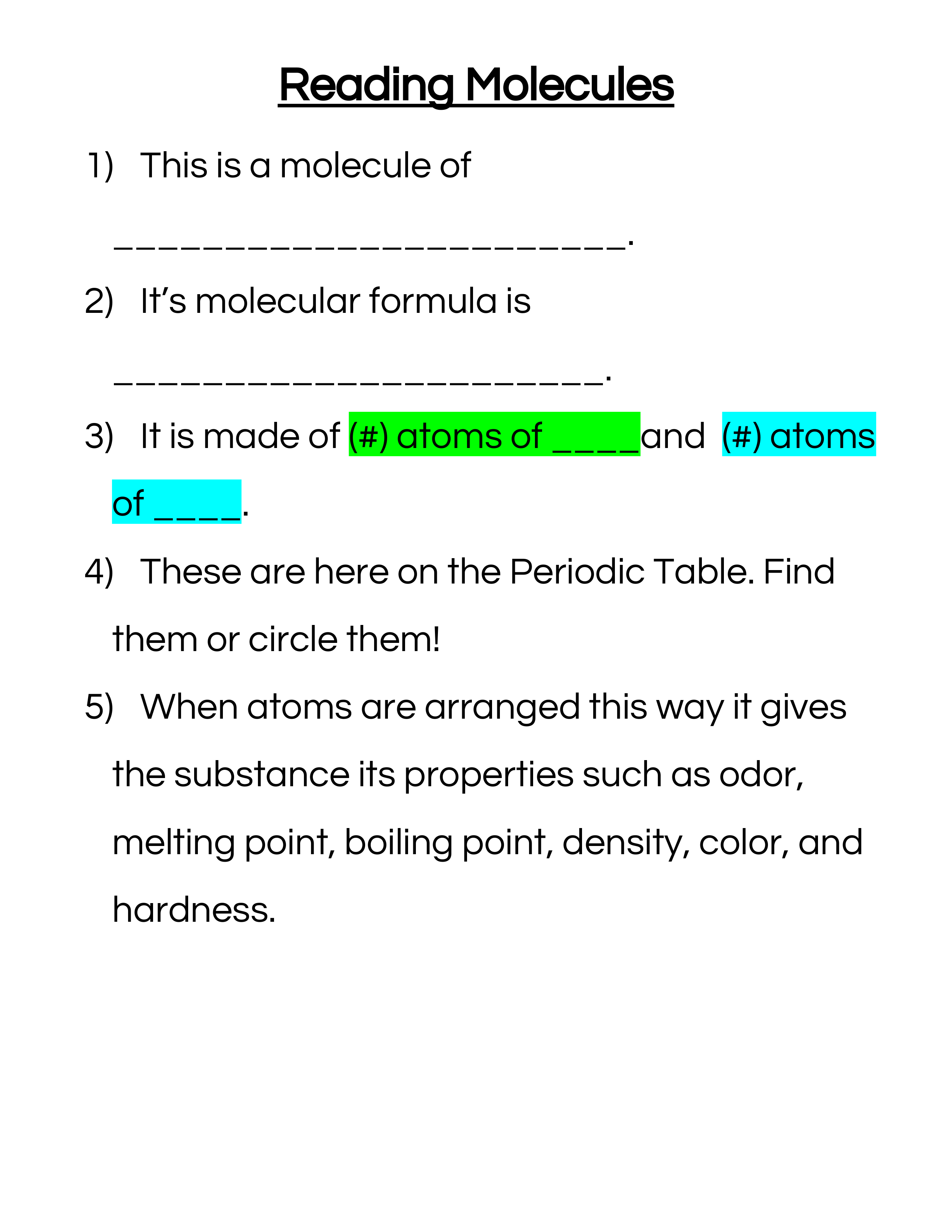 Circle the elements (building blocks) that made up the molecules on our paper from class today.