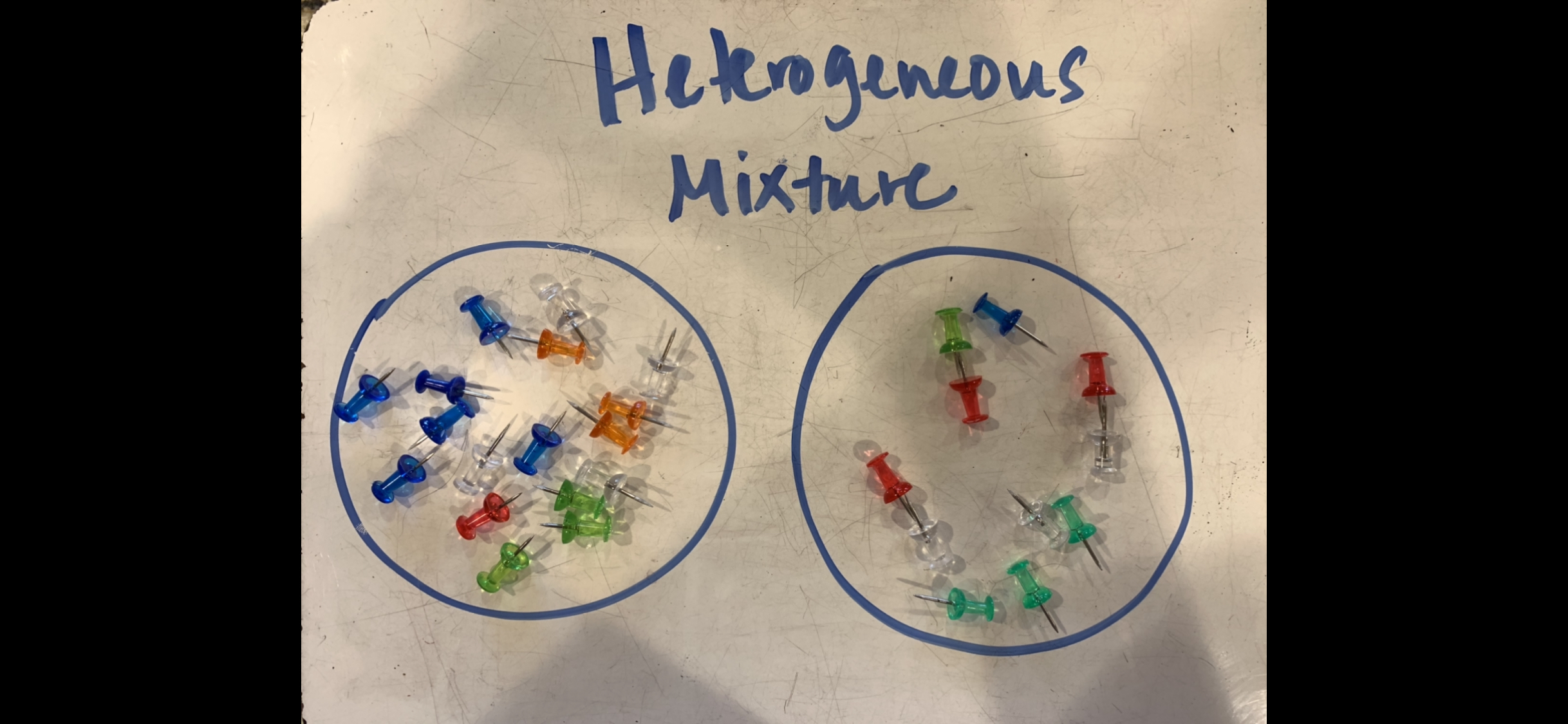 Build a model of a heterogeneousmixture. Take a photo. Label the items.