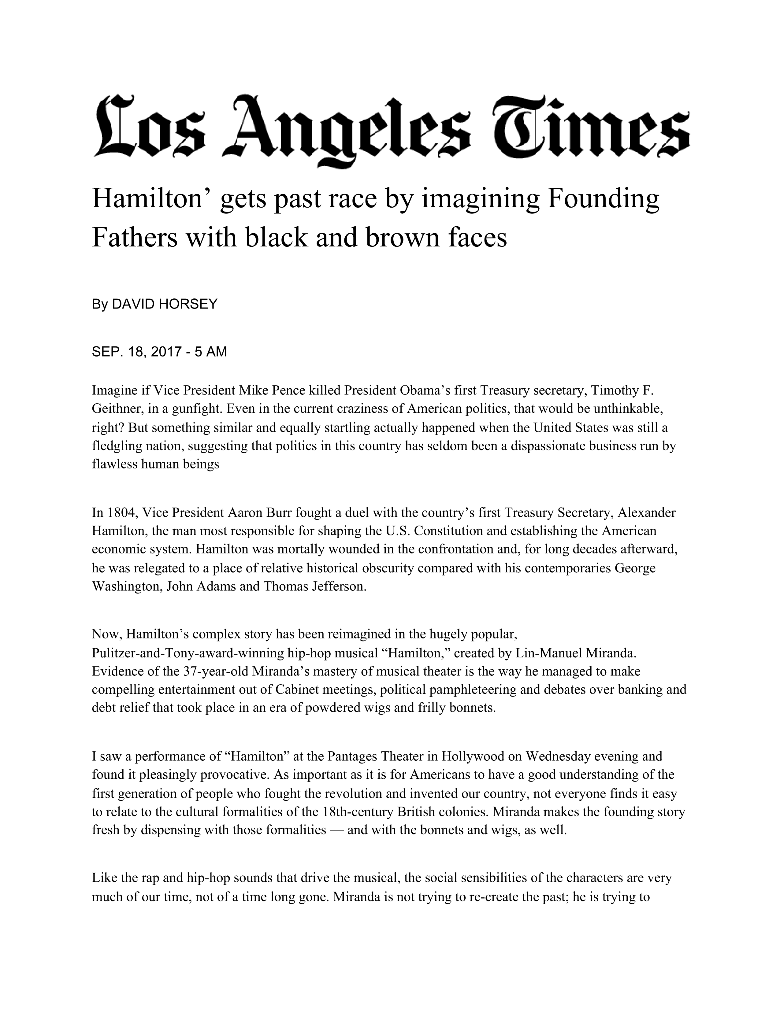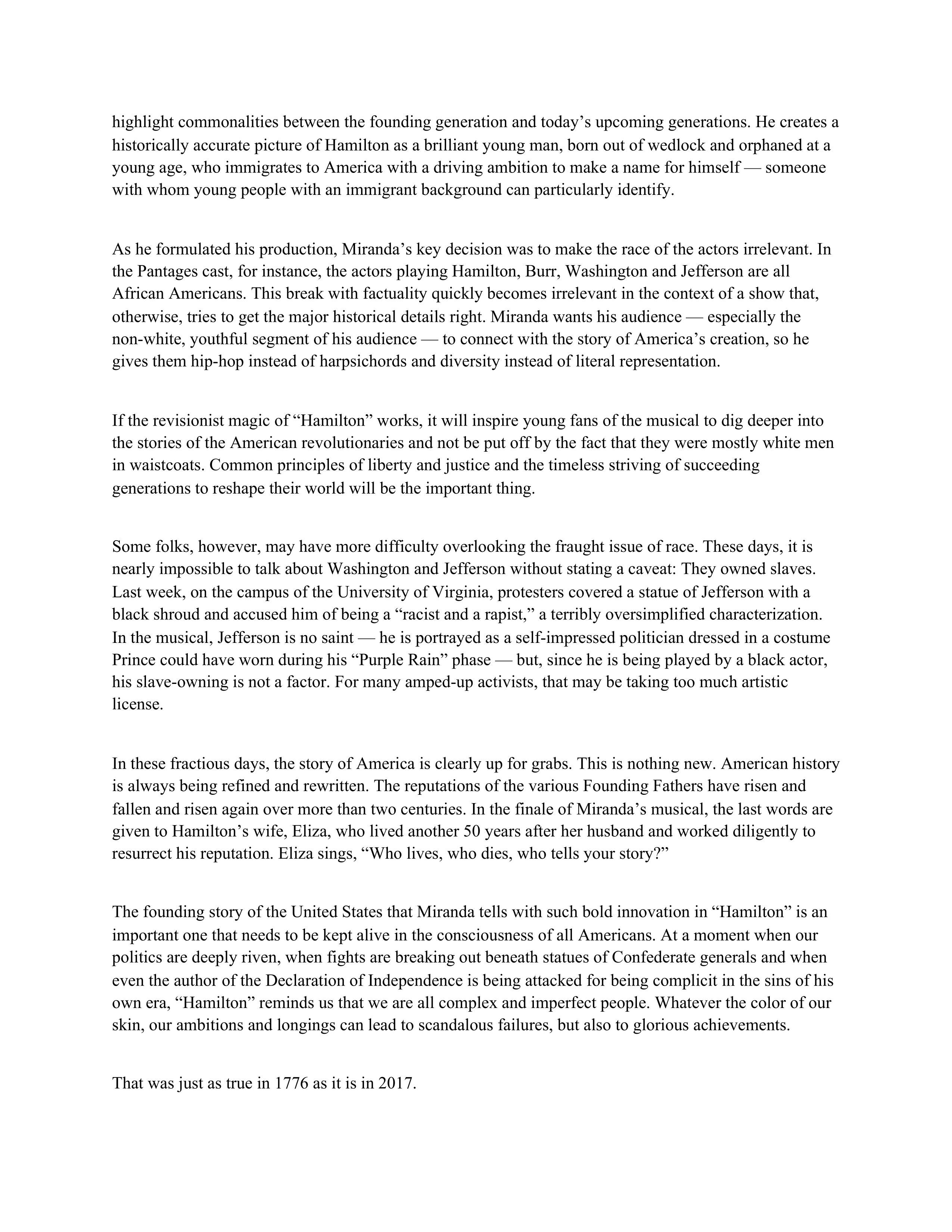 Give two examples of real historical situations that a part of the Hamilton musical.