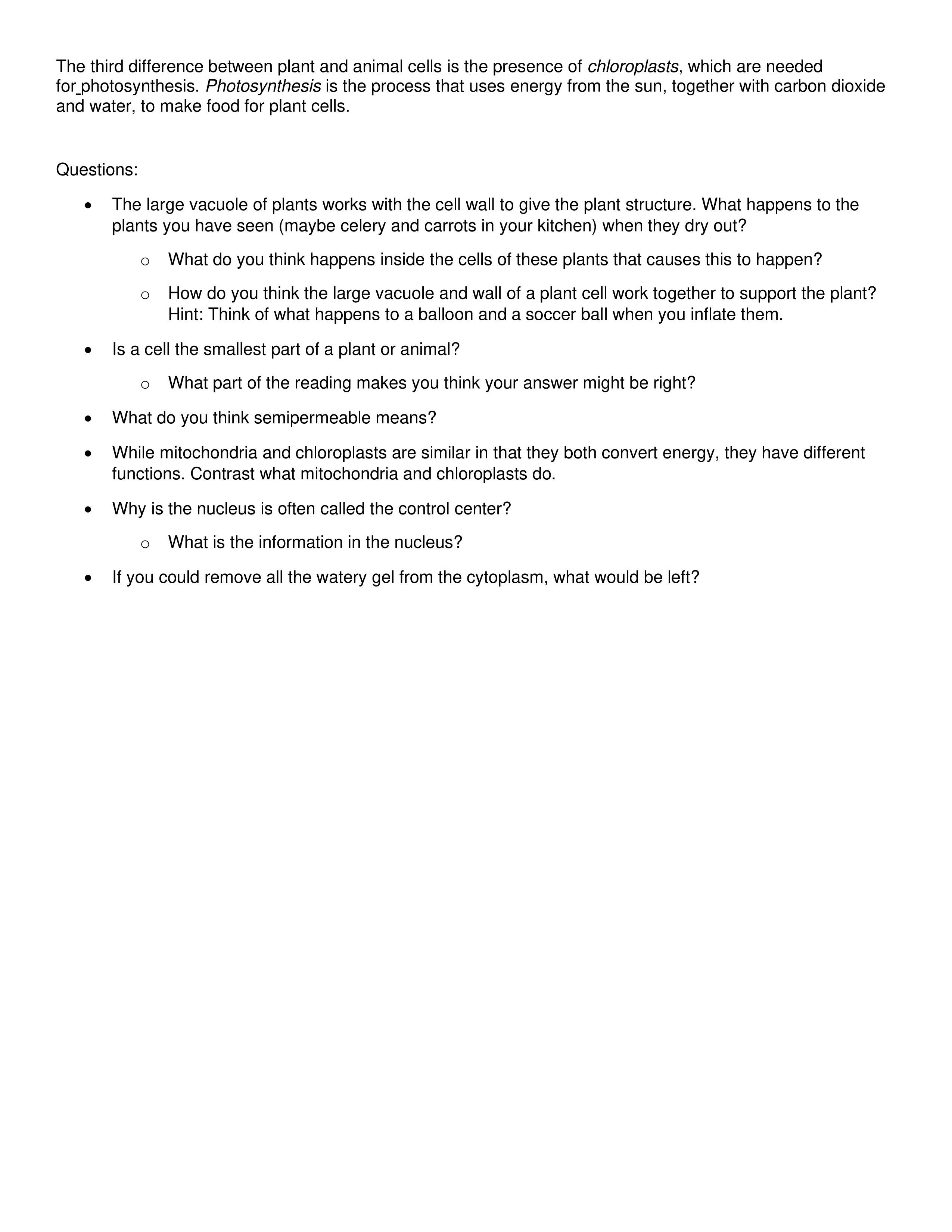 How do you think the large vacuole and wall of a plant cell work together to support the plant? Hint: Think of the difference between a balloon and a soccer ball when you inflate them.