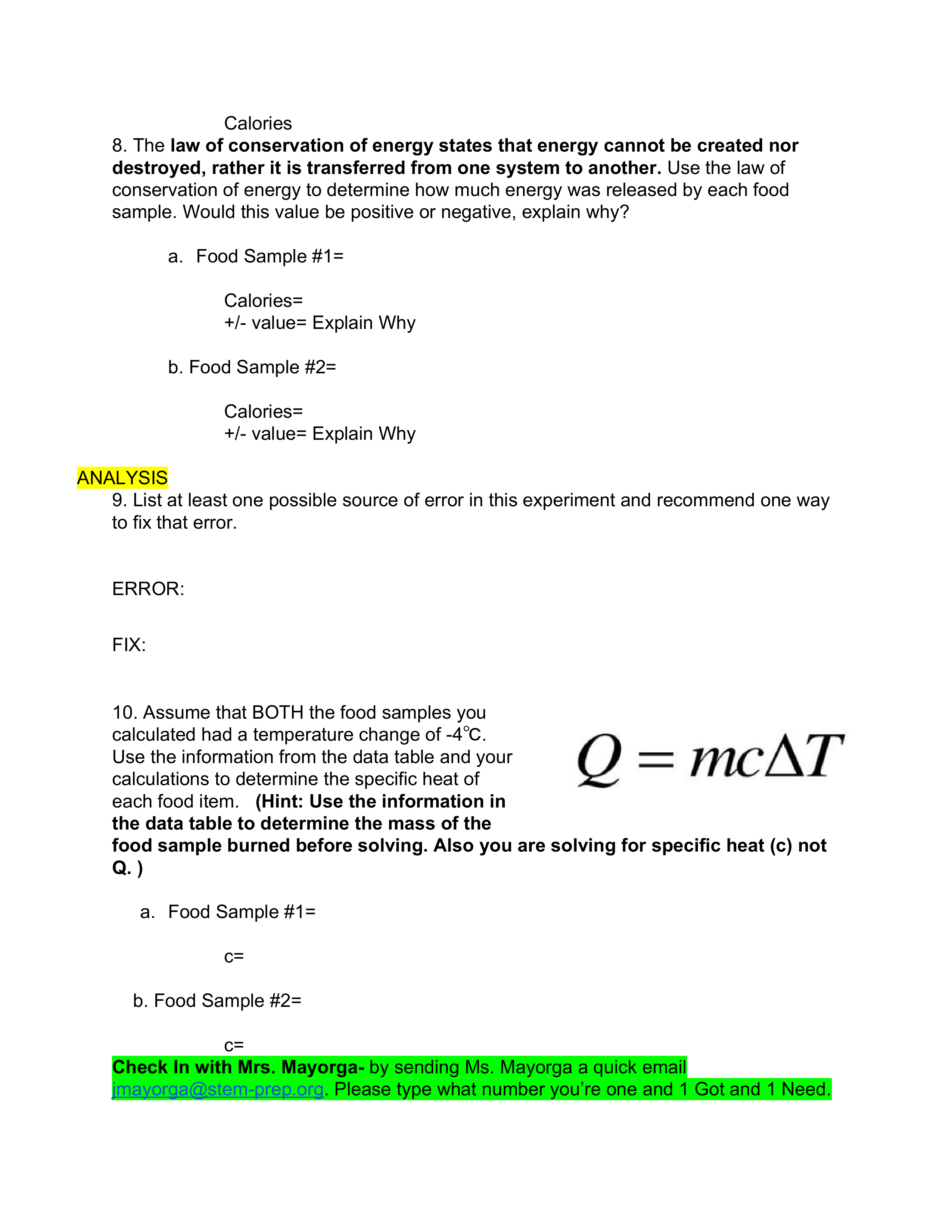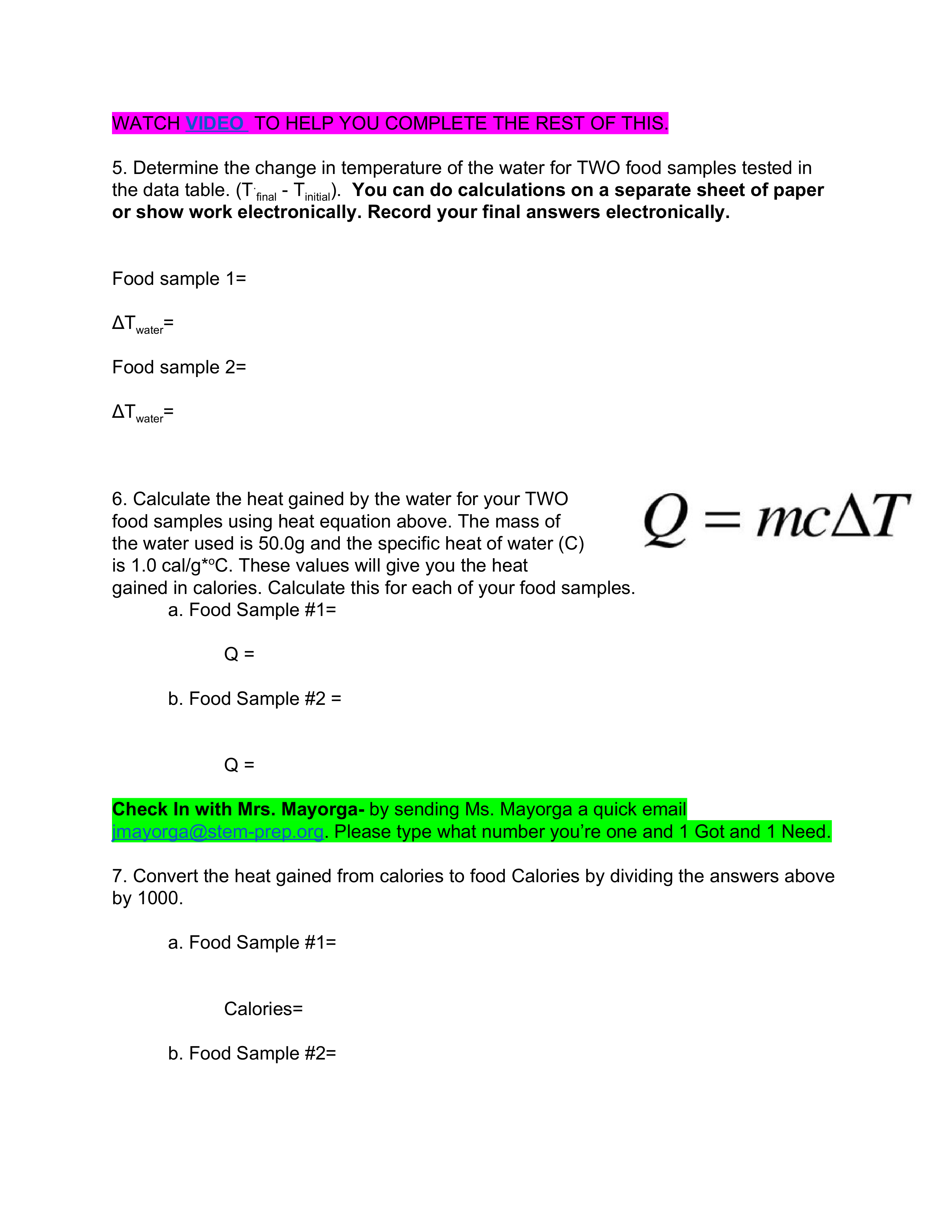 - Measure and record the final mass of the food holder and the sample.