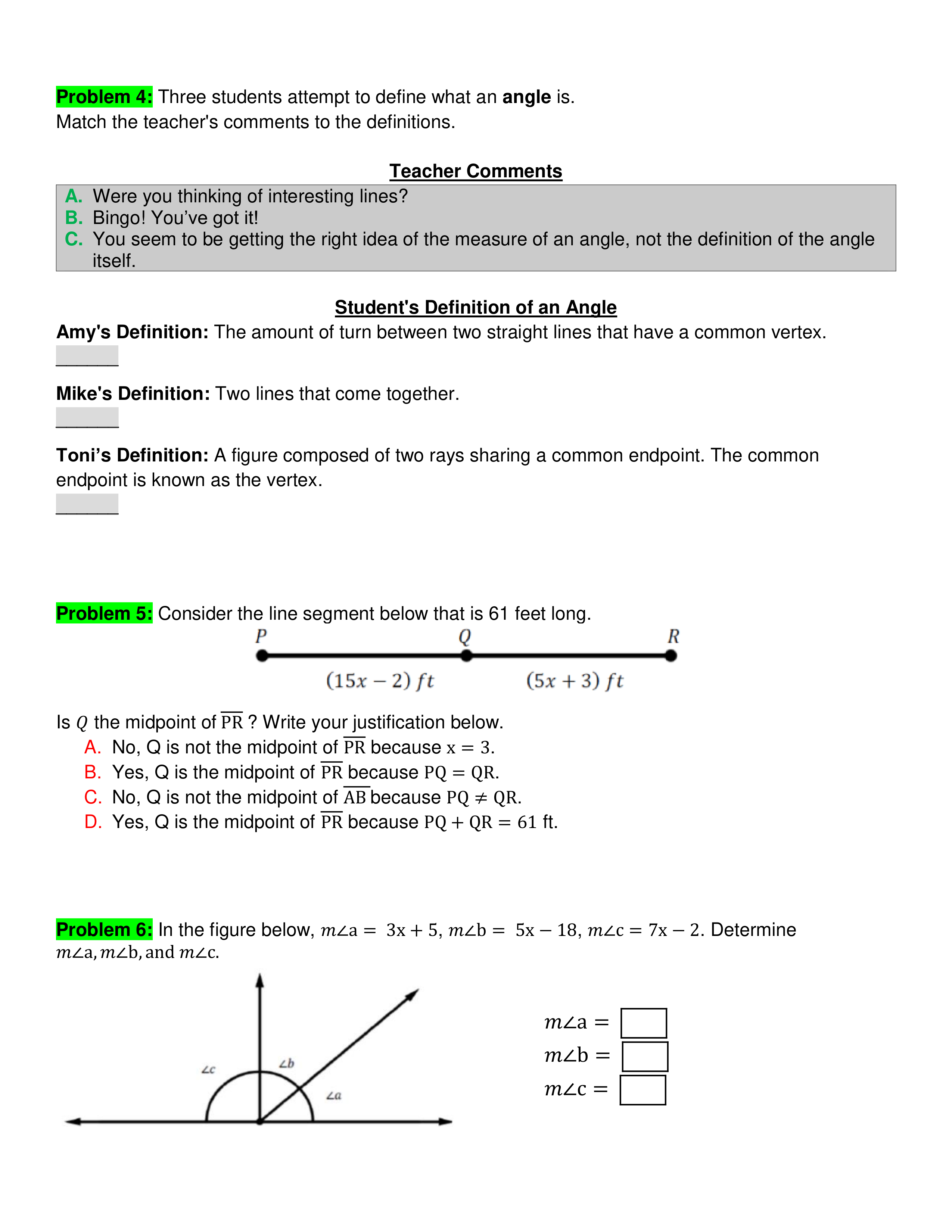 Amy's Definition: The amount of turn between two straight lines that have a common vertex. Matches teacher comments ____.