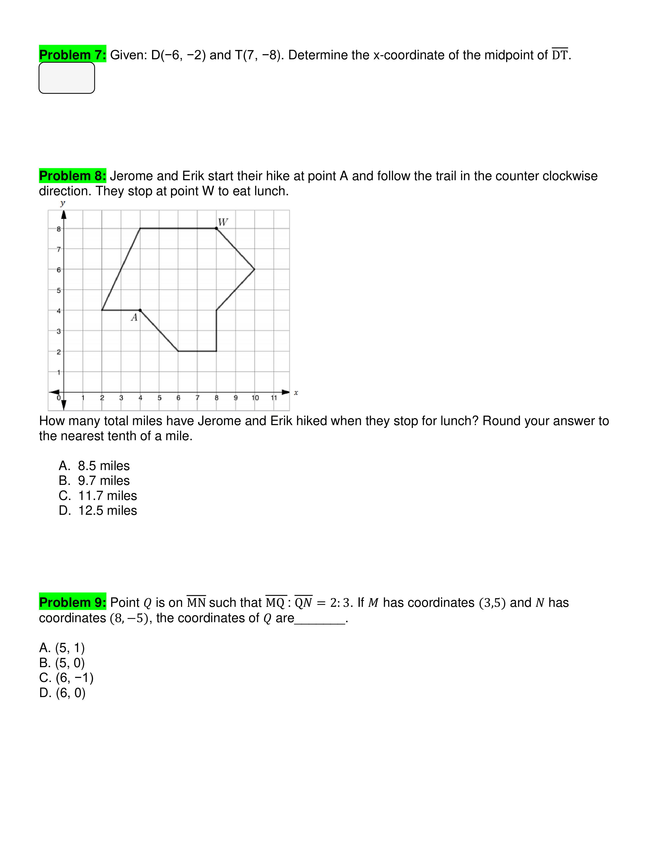 If M has coordinates (3,5) and 𝑁 has coordinates (8,-5), the coordinates of 𝑄 are_______.