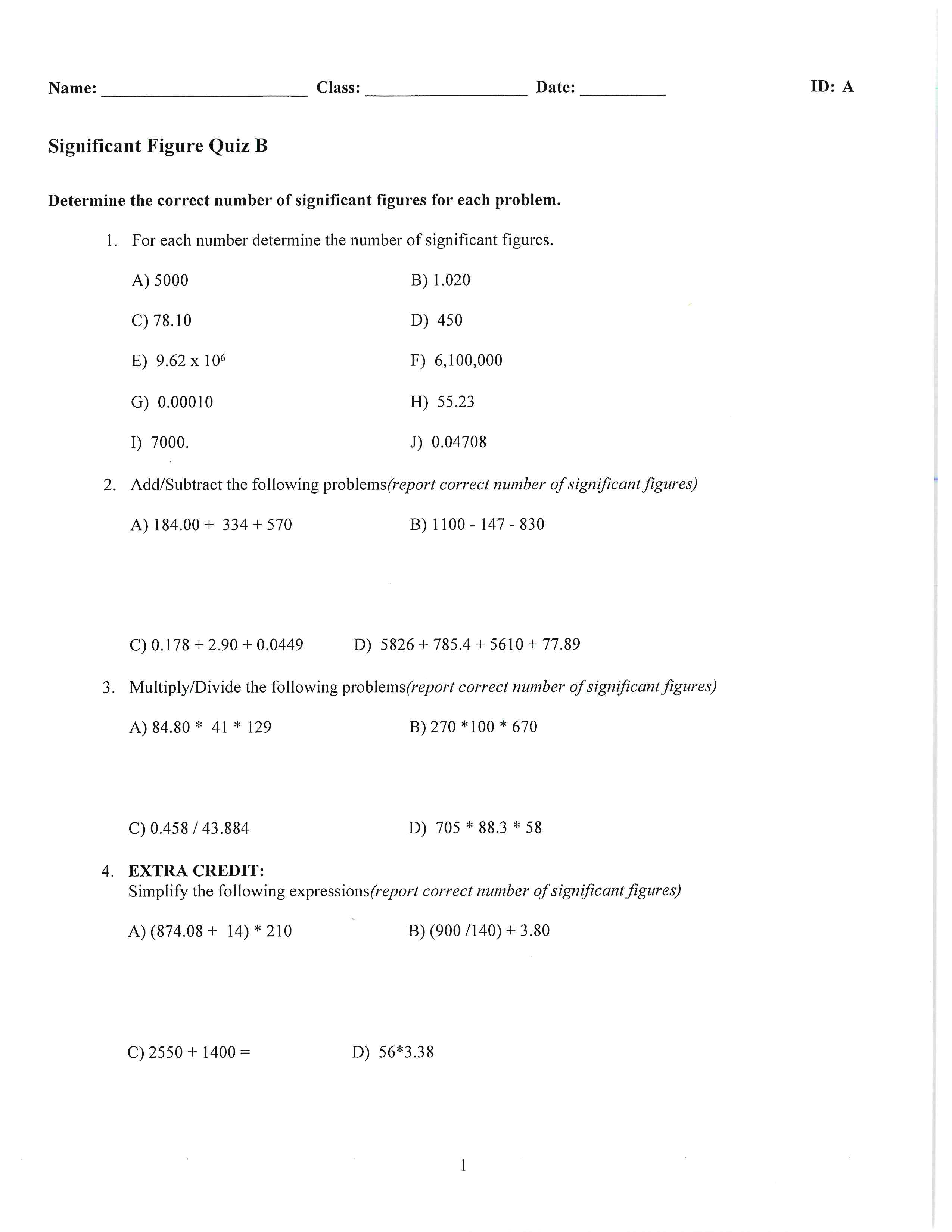 Significant Figure Quiz B