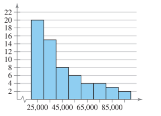 Determine whether the approximate shape of the distribution is symmetric, uniform, skewed left, skewed right, or none of these.