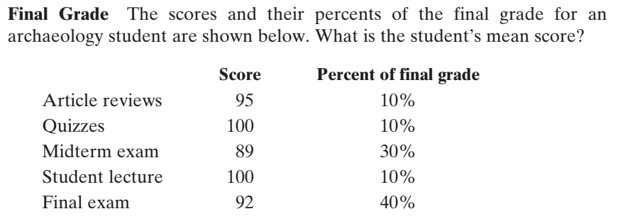 Find the weighted mean of the data: