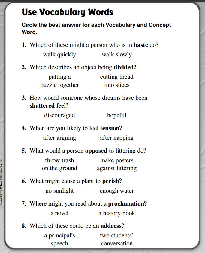 Vocabulary Unit 3 Week 4 McGraw Hill 4th grade