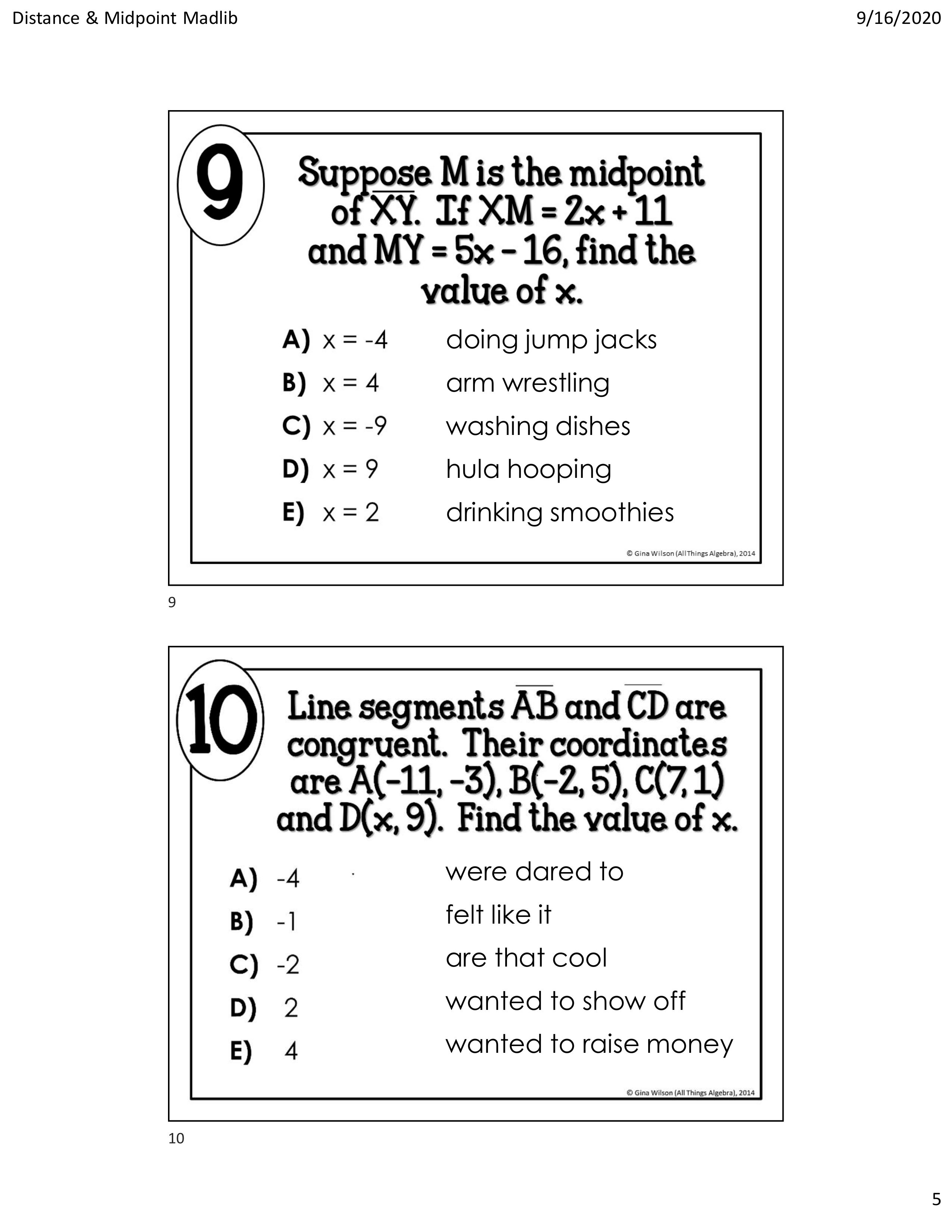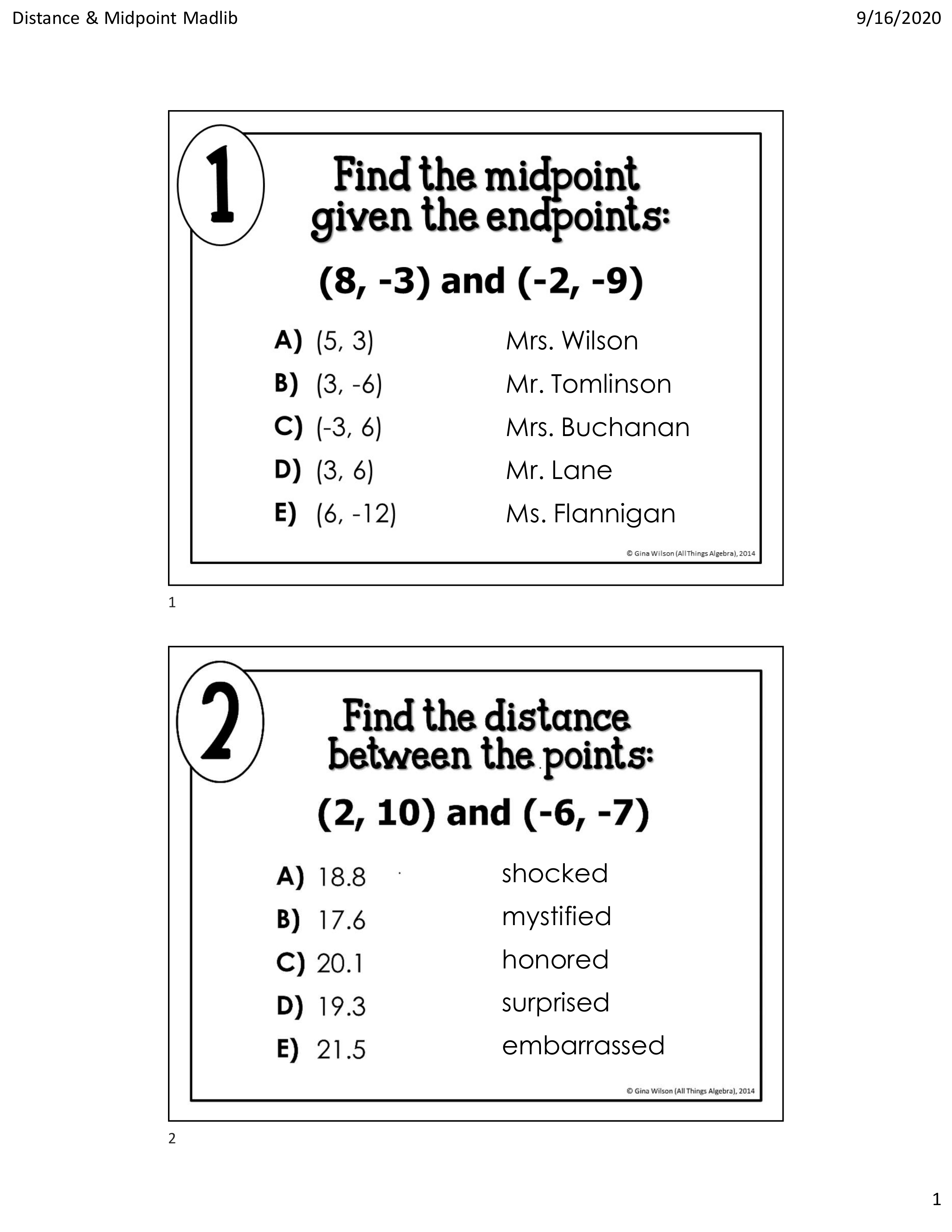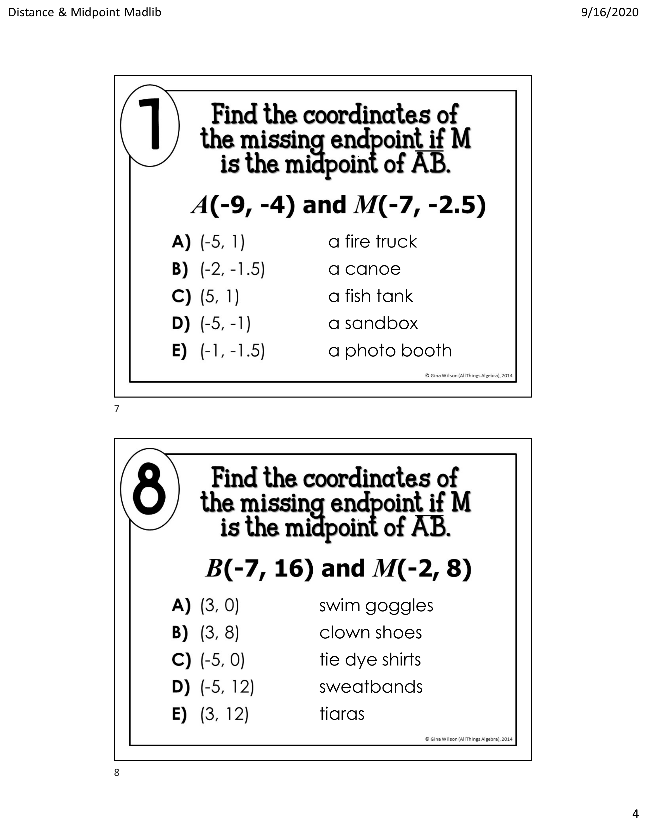 Show all your work, finding the missing endpoint, given one endpoint and the midpoint.