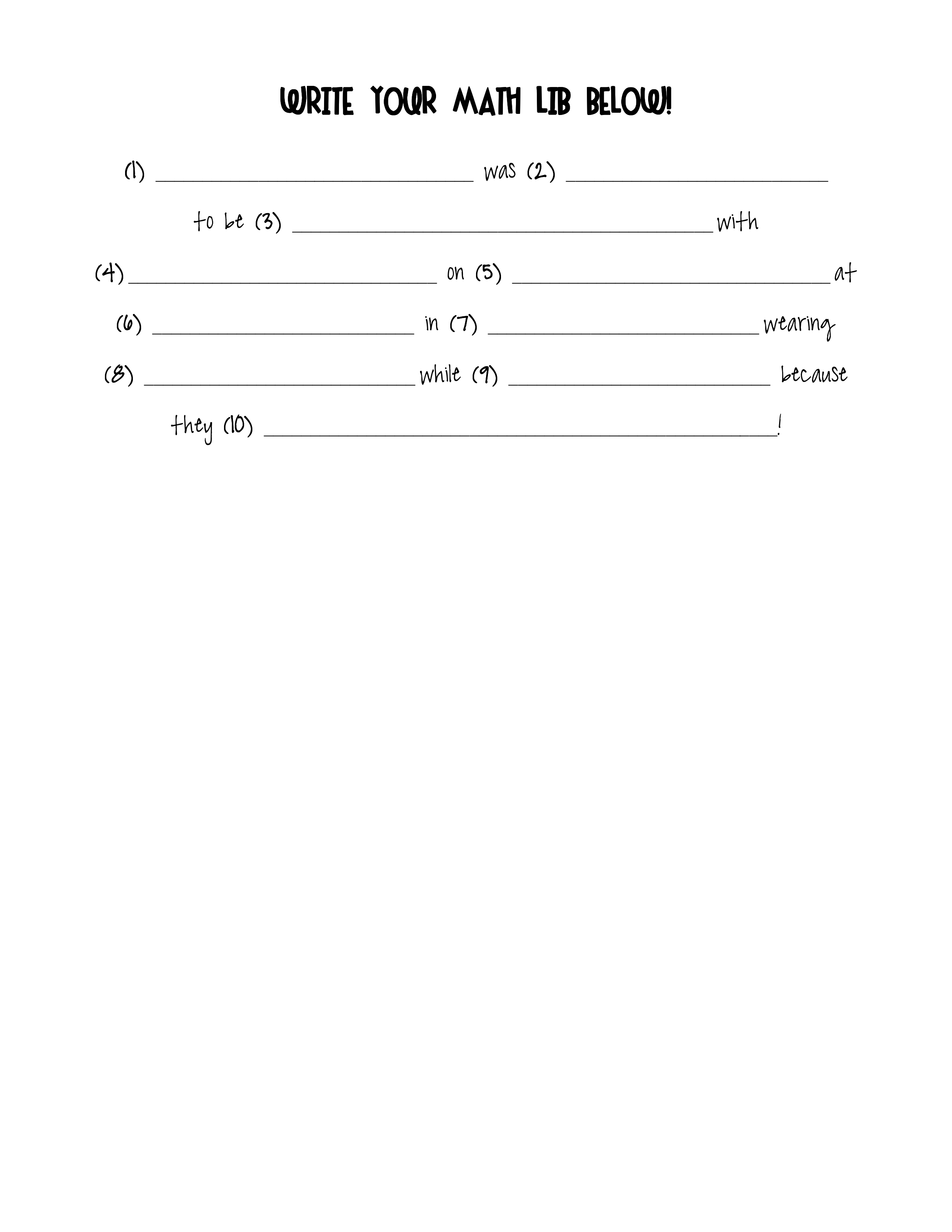 Use the prompt to complete the Madlib with the answers from questions 1-10. Type out your entire story below, including the given words.