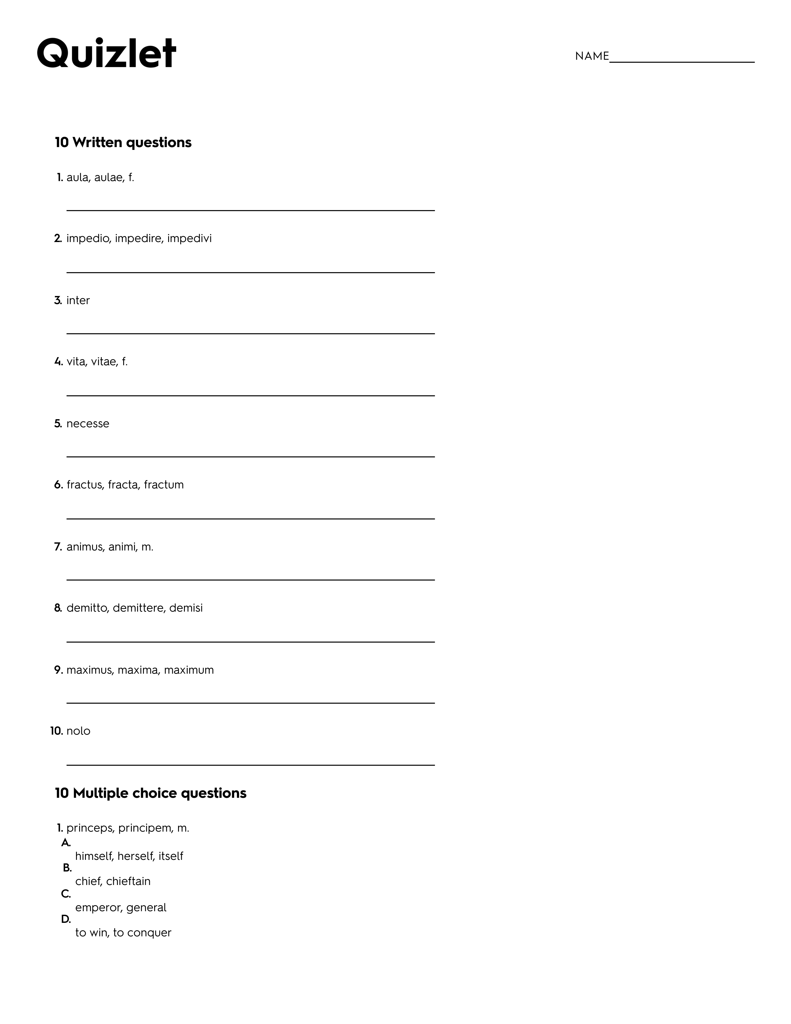 Latin III Review Quiz 2