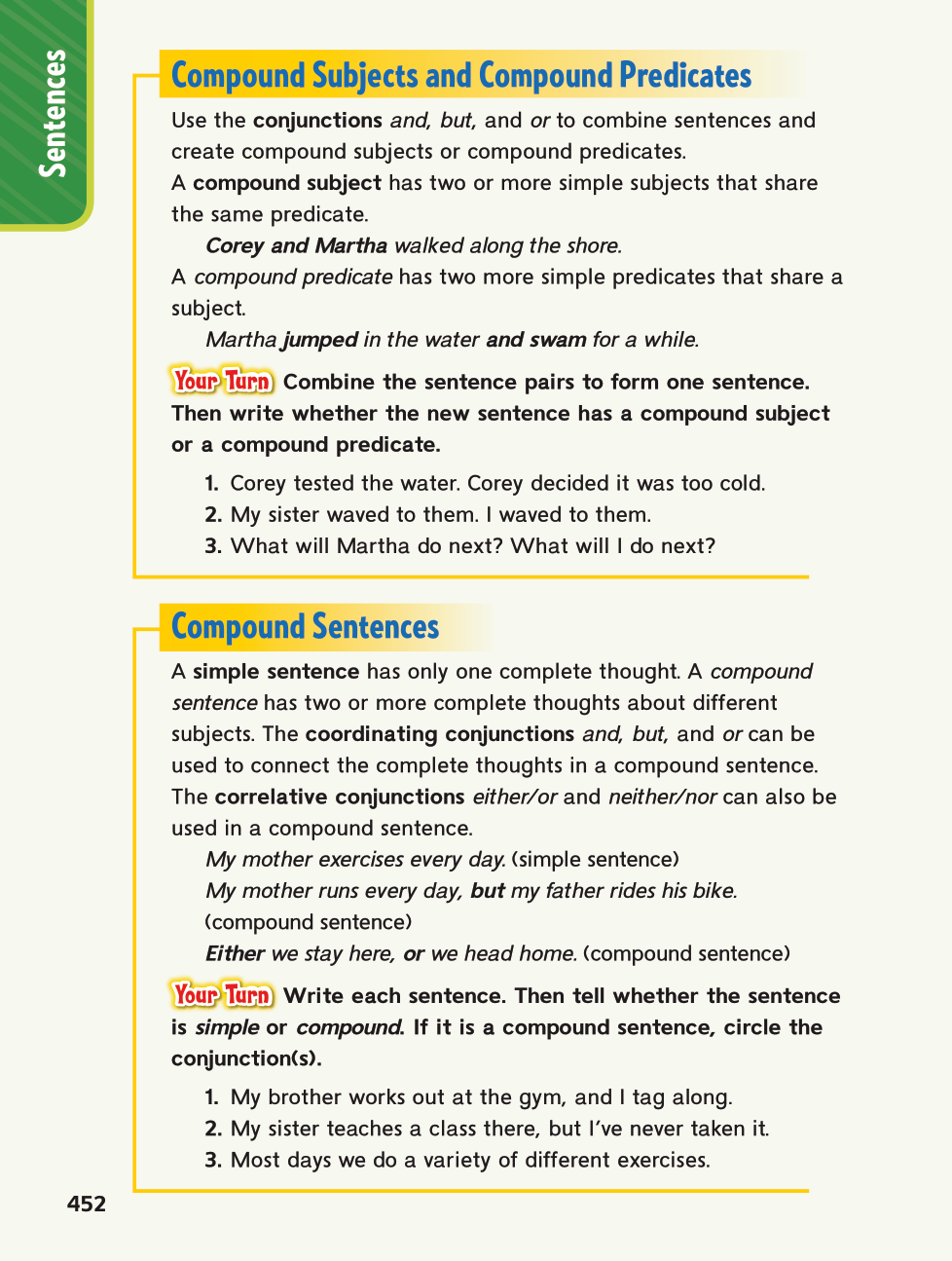 Write simple or compound for the sentence. If the sentence is compound, write the conjuction used.