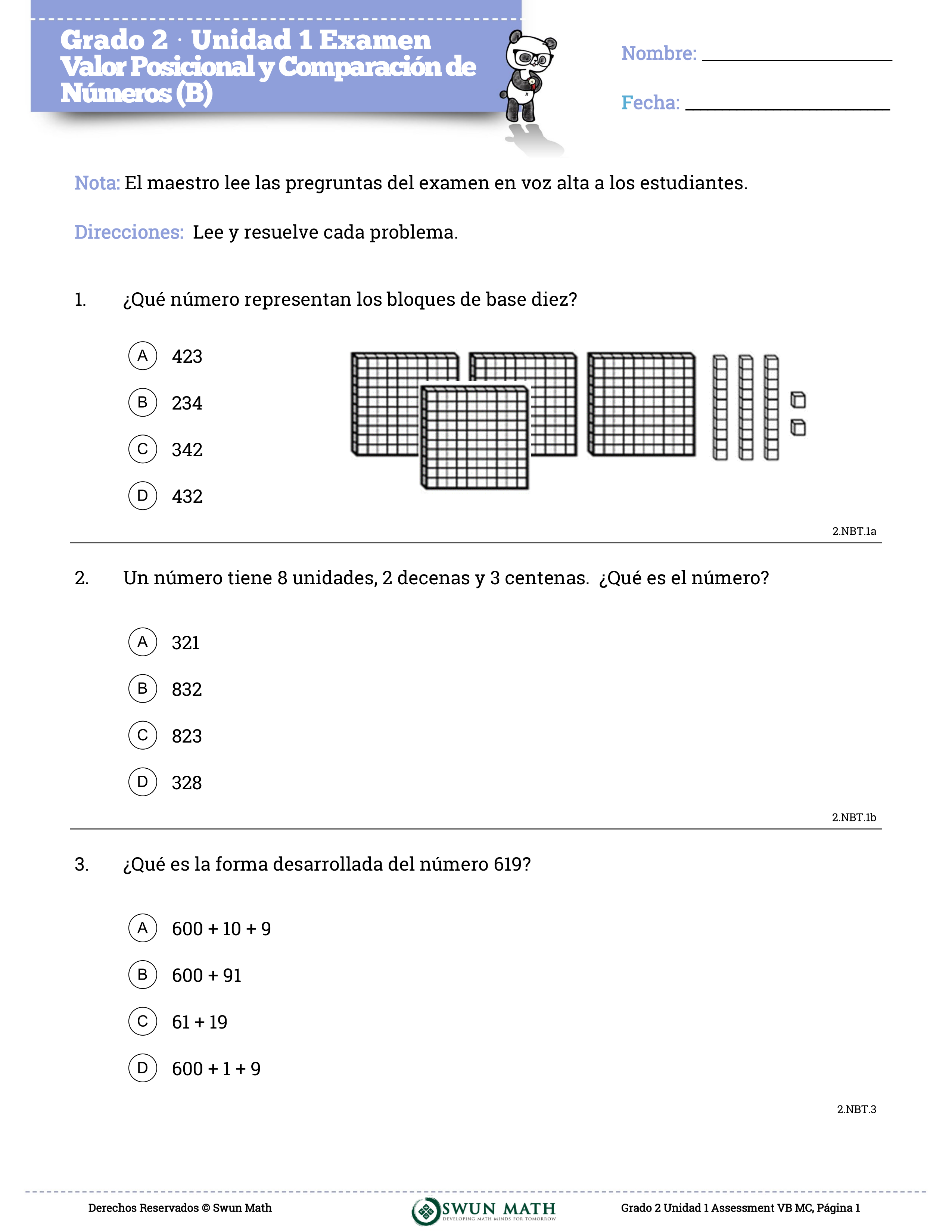 Swun Math: U1-Valor Posicional (Spanish)