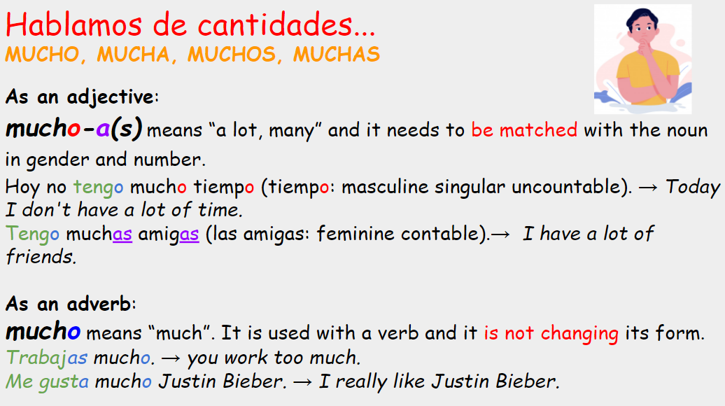 En México los niños tienen casi tantas/tantos/más deberes como en Francia.