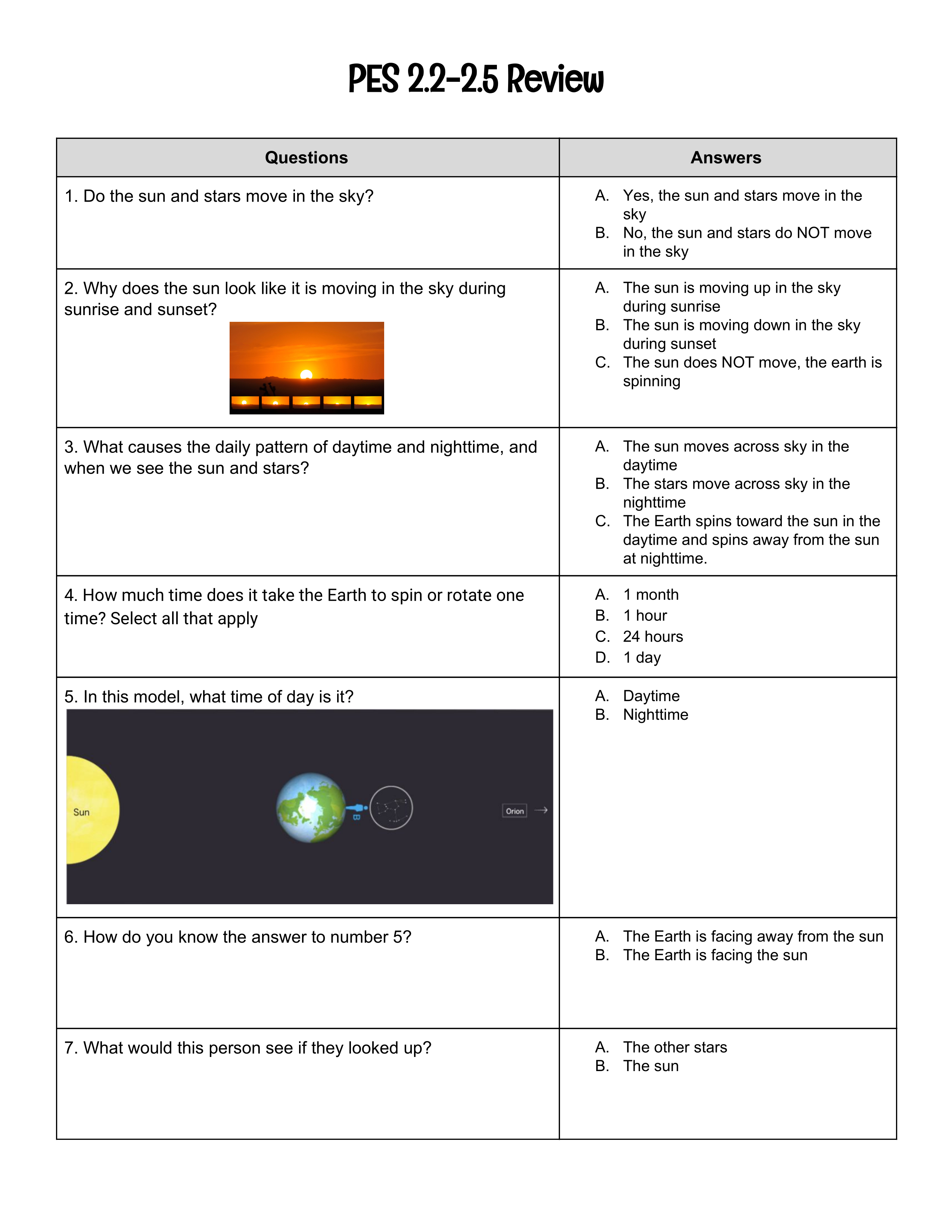 What causes the daily pattern of daytime and nighttime, and when we see the sun and stars?