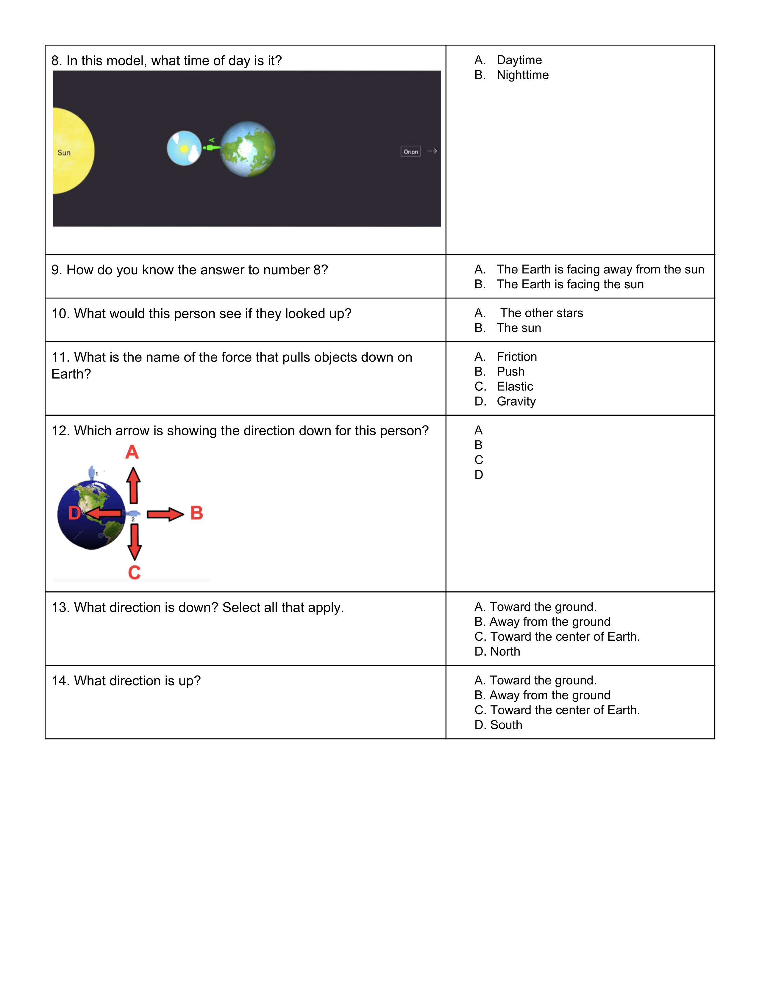 What direction is down? Select all that apply.