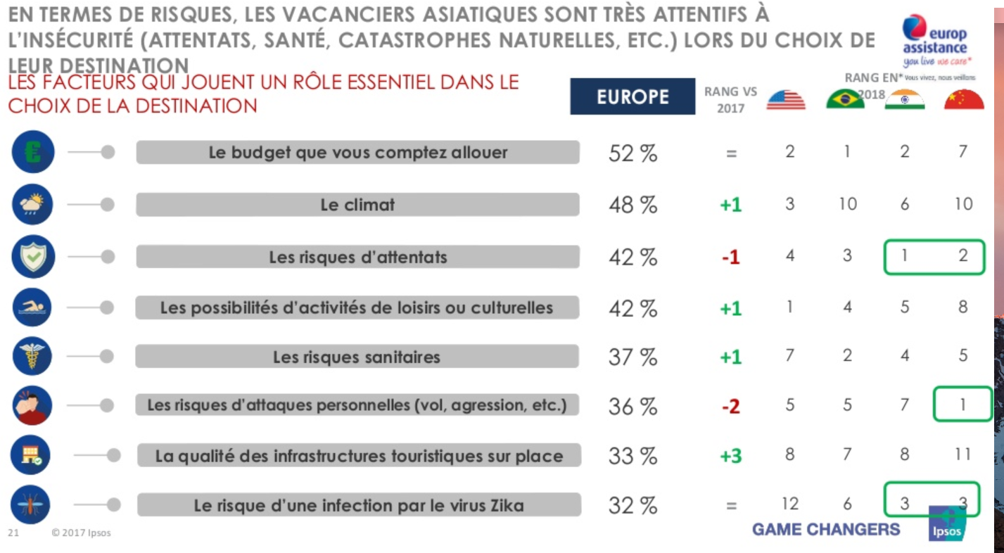 Pour les Européens, le budget est le facteur le plus important. Pour les Américains, c'est les possibilités d'activités. Quel rang (rank) est-ce que les Européens donnent à ces activités?
