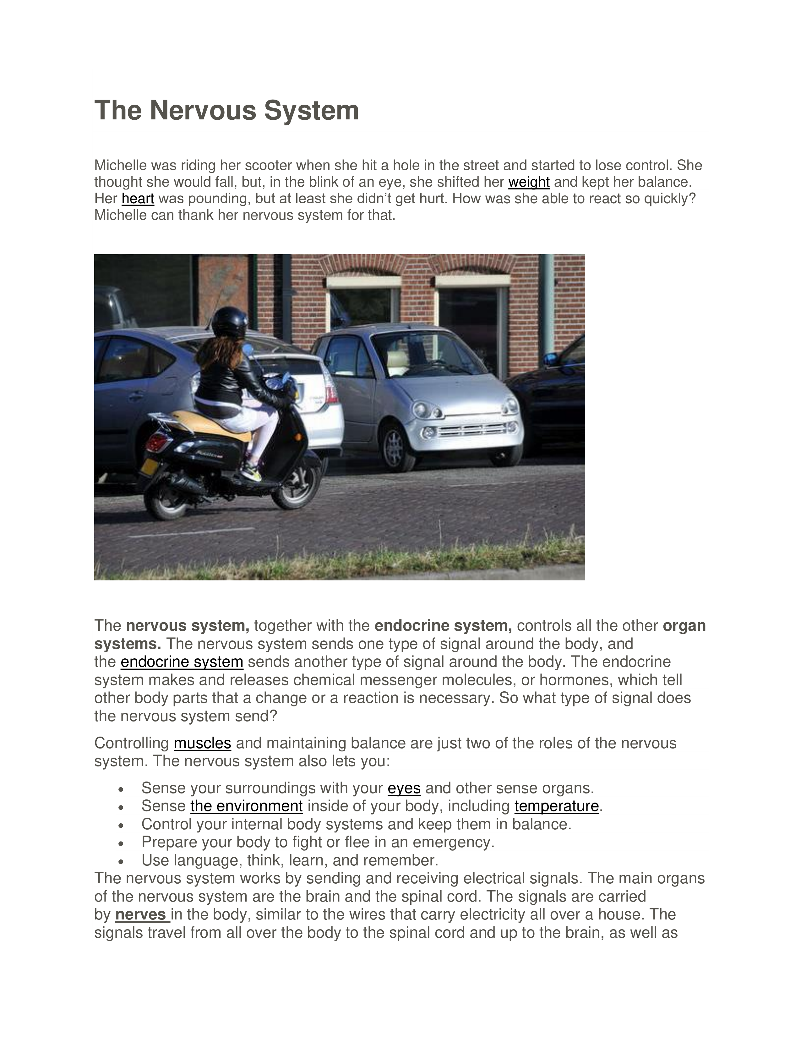 Before starting this reading, please tell me three things that come to mind when you hear the phrase "nervous system".