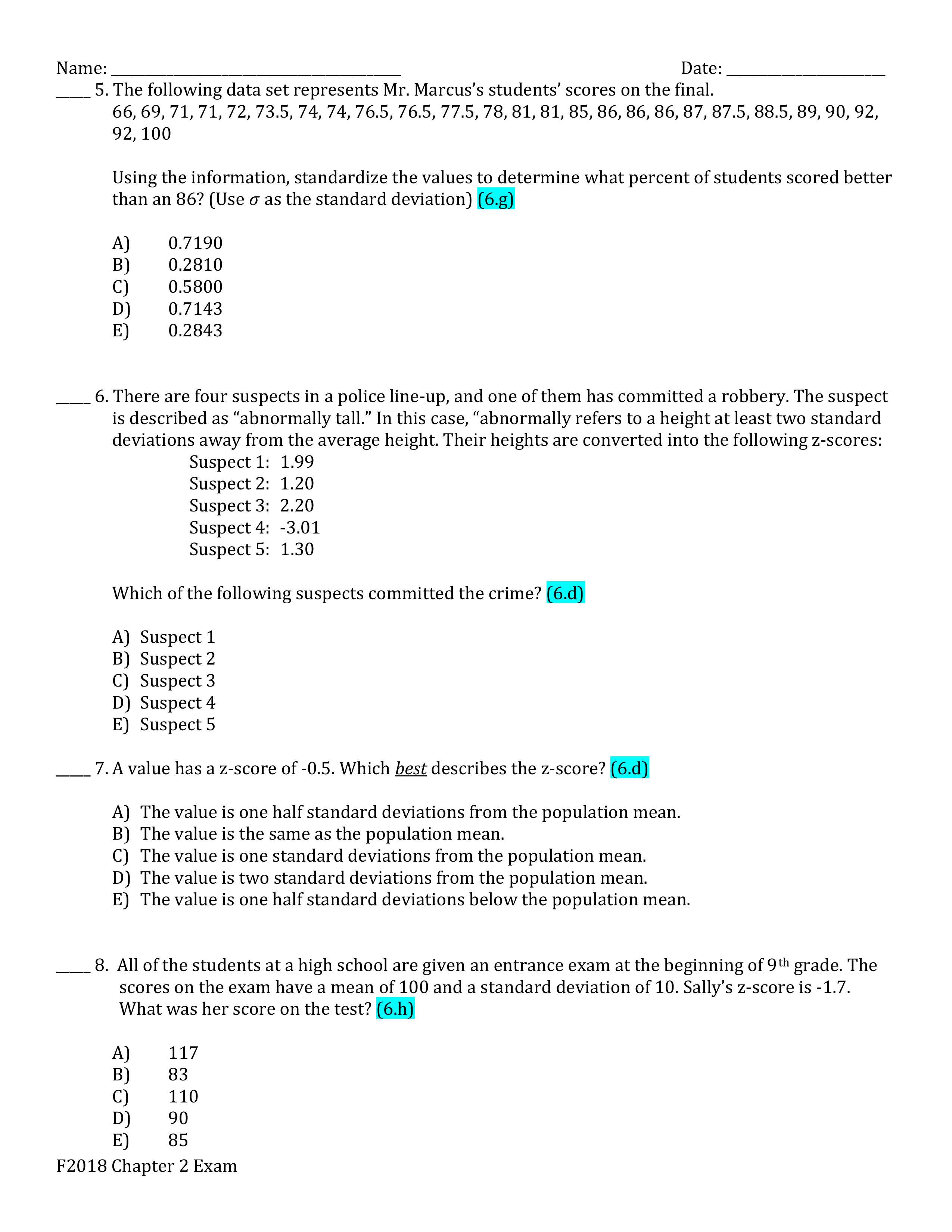 Questions I guessed on