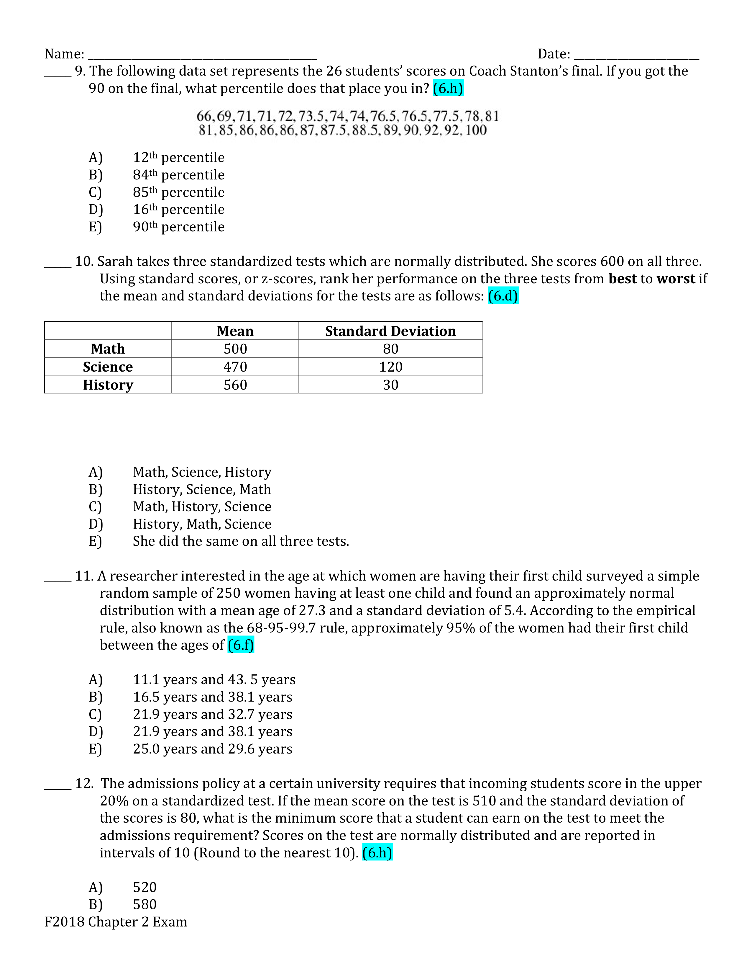 Chapter 2 Test SDC Stats