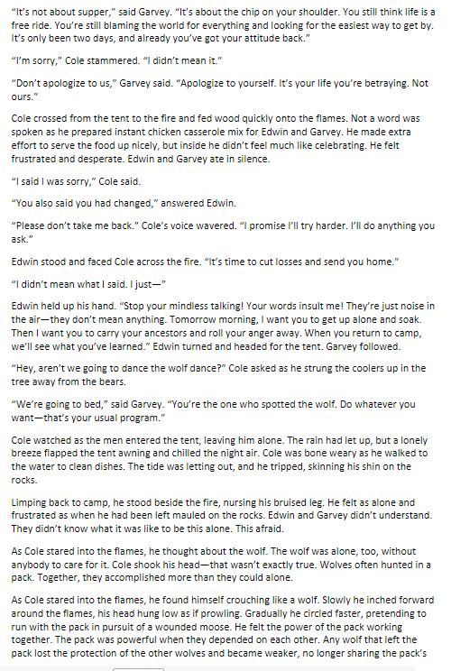 What lesson does Cole learn from the wolf dance?
