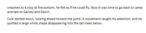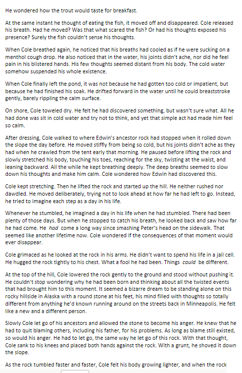 What does Cole fo after working on his shelter?