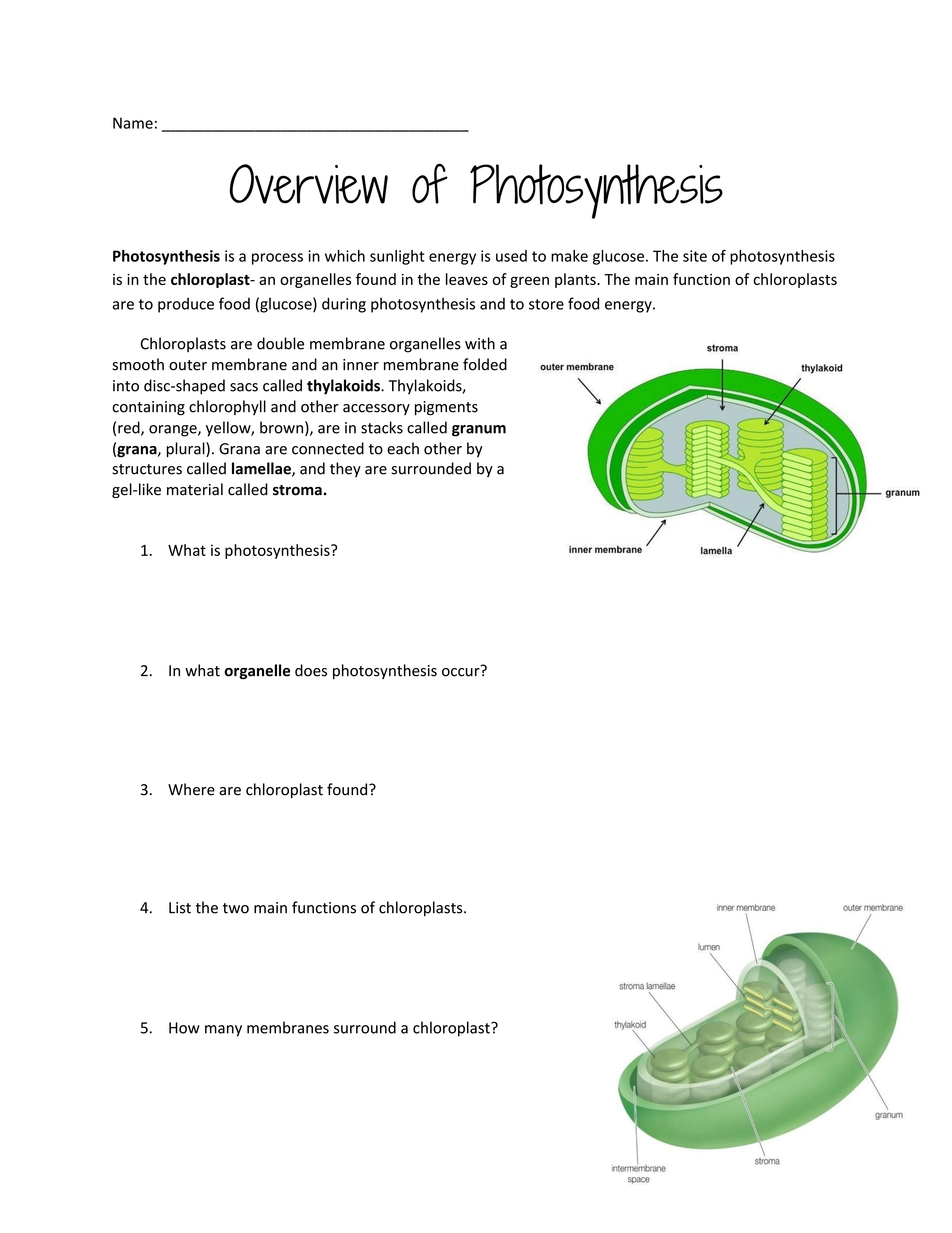 Shortened Overview of Photosynthesis