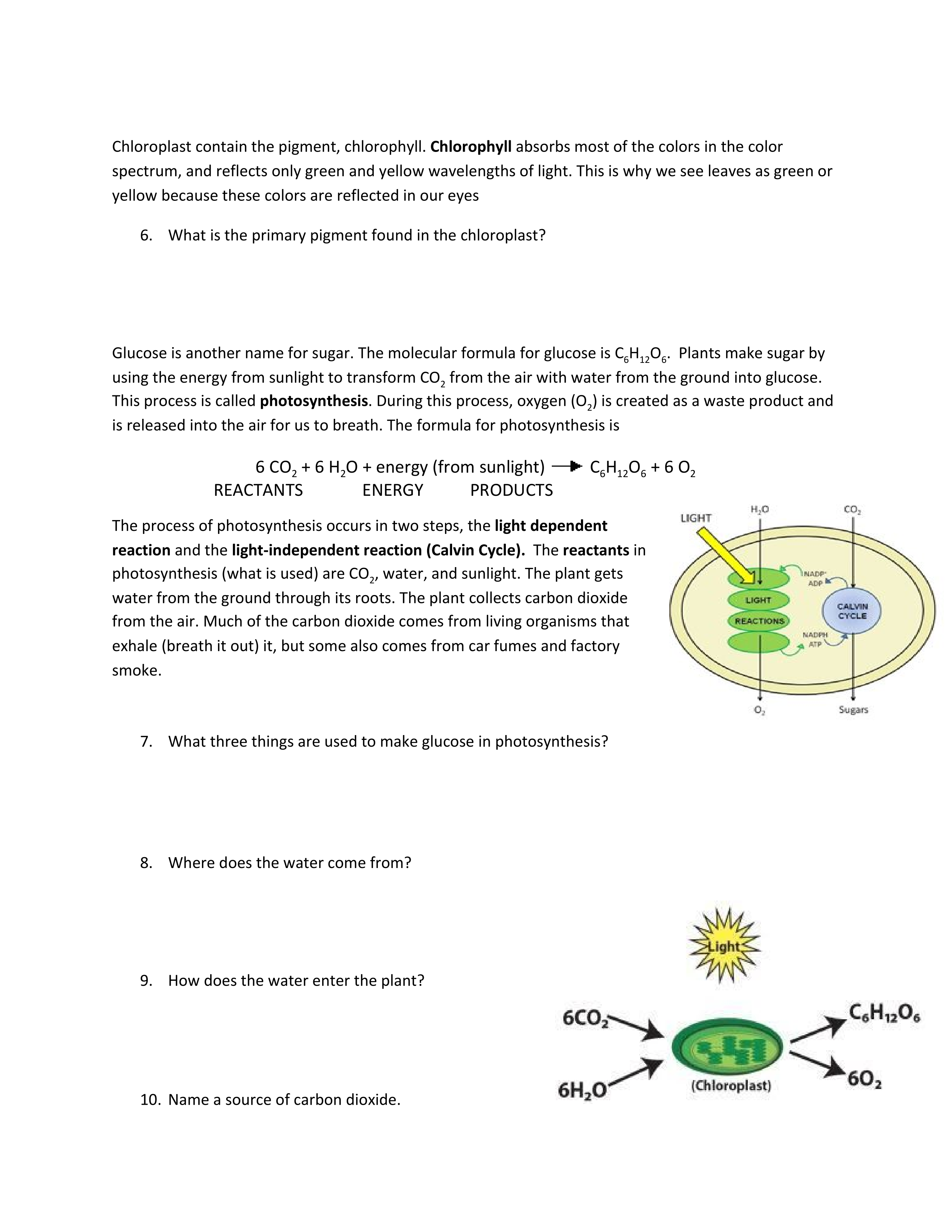 What three things are used to make glucose in photosynthesis? Click all that apply.