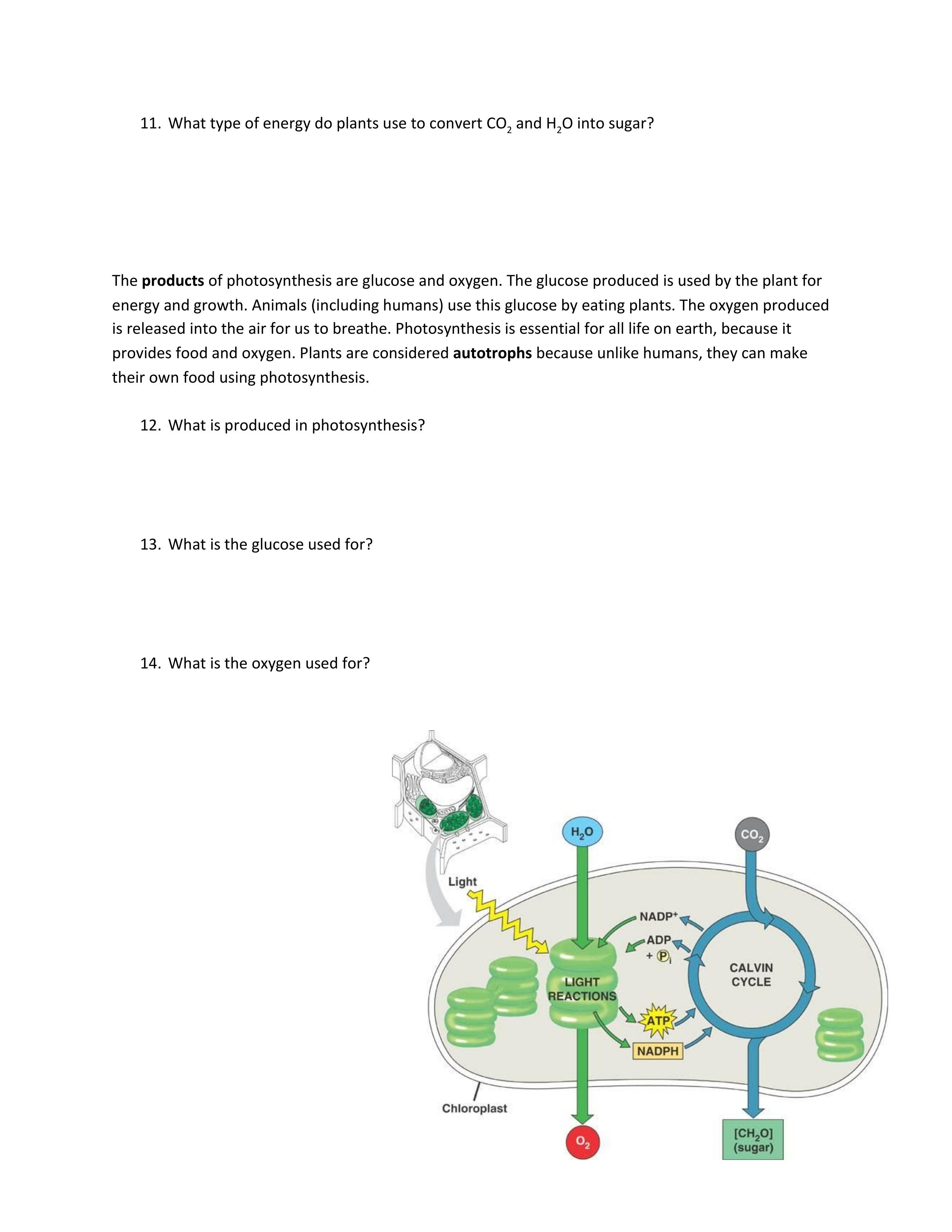 Click on the two main functions of chloroplast.
